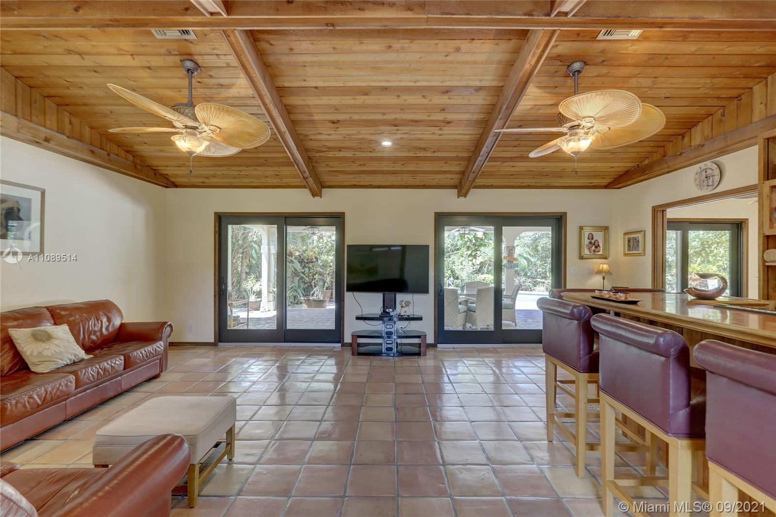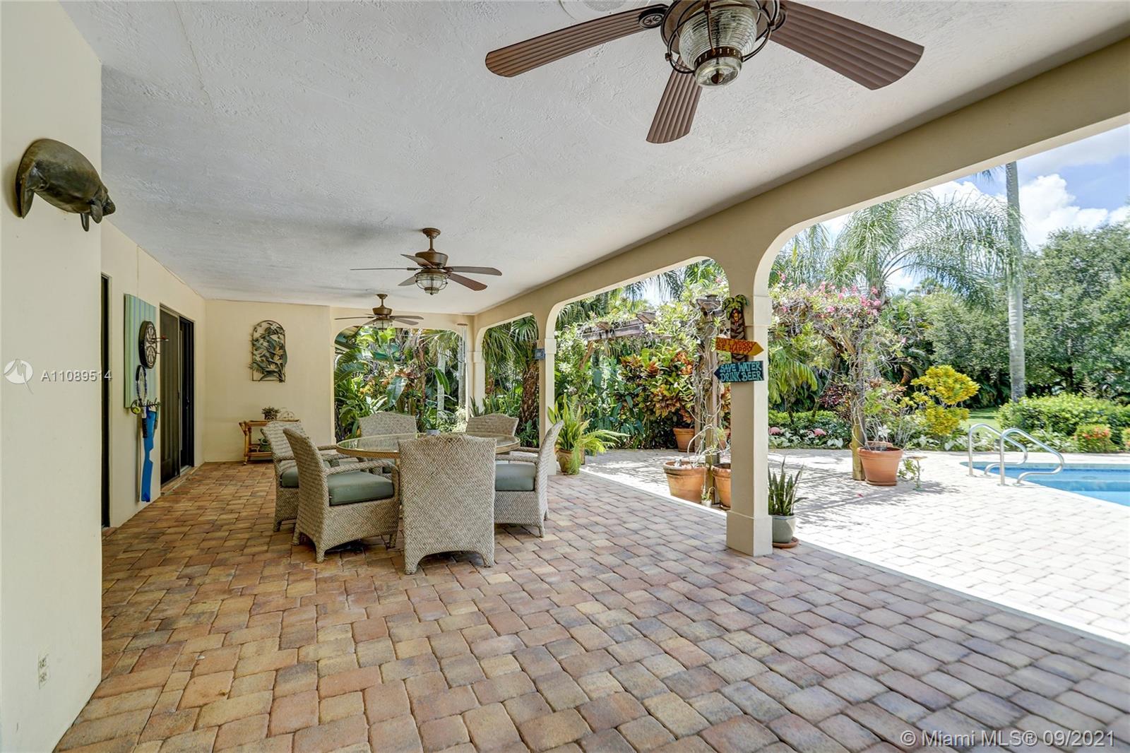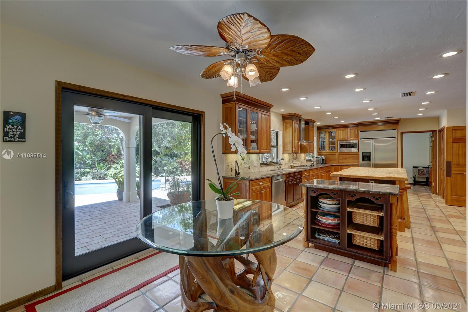 Entertainer’s dream; 4/4; living room has wet bar & expansive view of pool, very private yard, kitchen & breakfast room; den with wood burning stove & big TV; big sitting room with gas fireplace, wet bar & TV; chef’s kitchen with granite tops, baking station, dual sinks & double ovens, gas cook top, upgraded stainless steel appliances, 4x8 butcher block island, huge custom cabinets & warming drawer; separate entrance to granny flat with front porch; updated baths; custom cabinets in laundry with oversized washer/dryer; serenely landscaped yard features areca palm hedge, covered patio, lighted pergola, oversized pool with upgraded glass tile & converted horse barn available for multi-use; steam room; garage office; two custom vanities; showers with custom jets, many additional features.