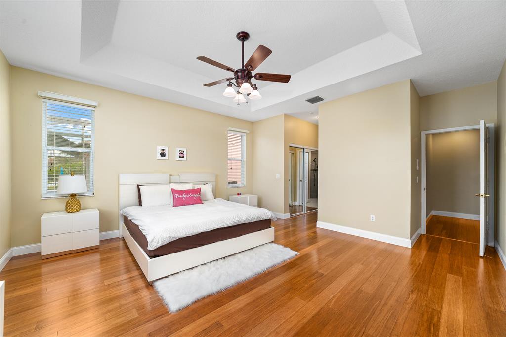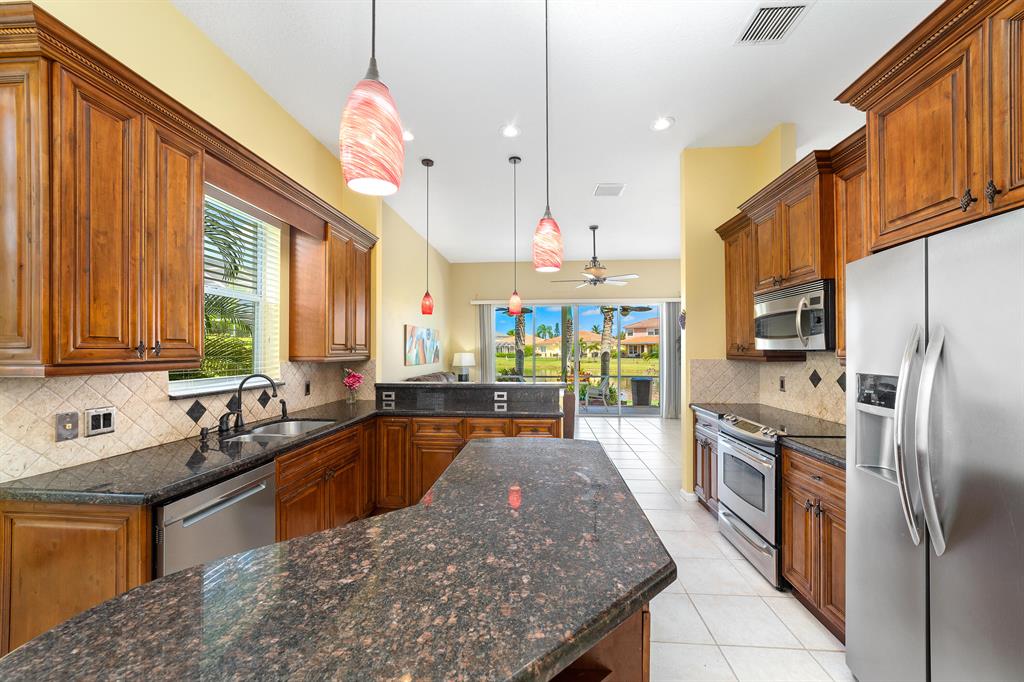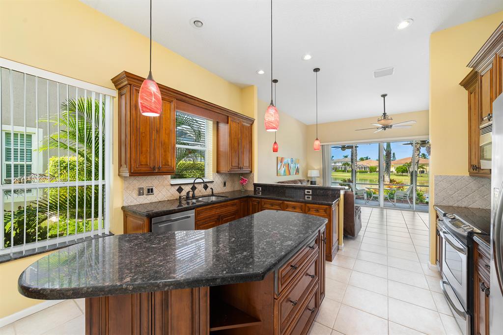 Great Boca Raton property with unbelievable, panoramic lake views & is located in the highly desirable Boca Winds community. As soon as you walk through the leaded glass front door you immediately notice the water views through the living room. You're greeted with high ceilings throughout & a fantastic, private triple split bedroom floor plan. The home features wood themed flooring & tons of natural light. The updated kitchen has a large island, granite countertops, stainless steel appliances & opens out to the family room with more long panoramic lake views! The large, screened in porch provides the perfect place to relax, entertain & enjoy the water vistas with your morning coffee, or take in the reflections of the moon off the water in the evening. Adjacent to the porch you have a