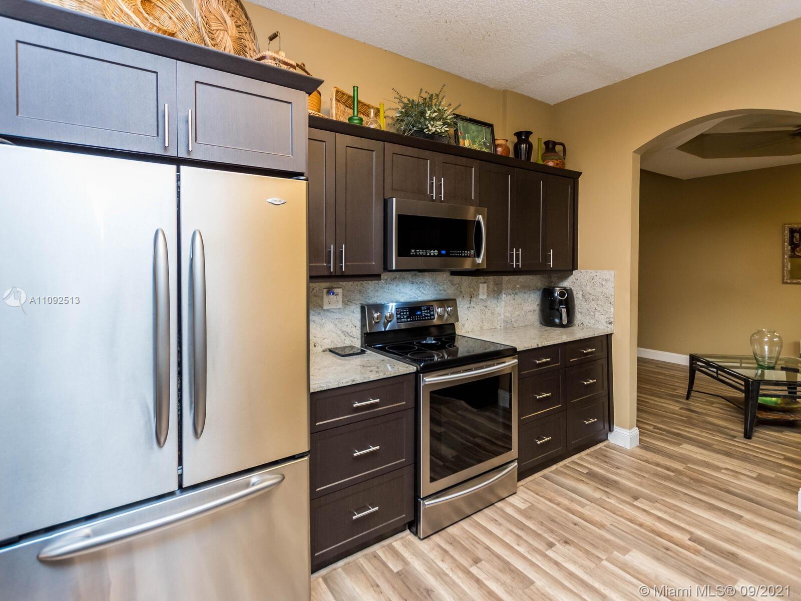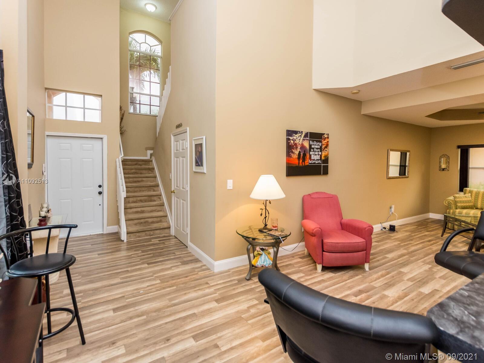 Welcome home to the sought-after resort community of Pembroke Isles and this amazing 4 bedroom, 2.5 bath pool home. When you walk into the foyer you will be greeted with soaring vaulted ceilings. The bottom floor features new laminate flooring (2017) throughout the spacious living room, family room, and dining rooms. The kitchen was recently remodeled (2018) with new cabinets with soft close doors and granite countertops. The spacious master suite is on the ground floor and features huge walk-in closets. The upstairs of the home has three generously sized bedrooms along with a recently renovated bathroom (2020). The entertainment space in your new back yard is spectacular. The centerpiece of the large open air patio is an oversized in ground pool. Don't walk...run to see it!