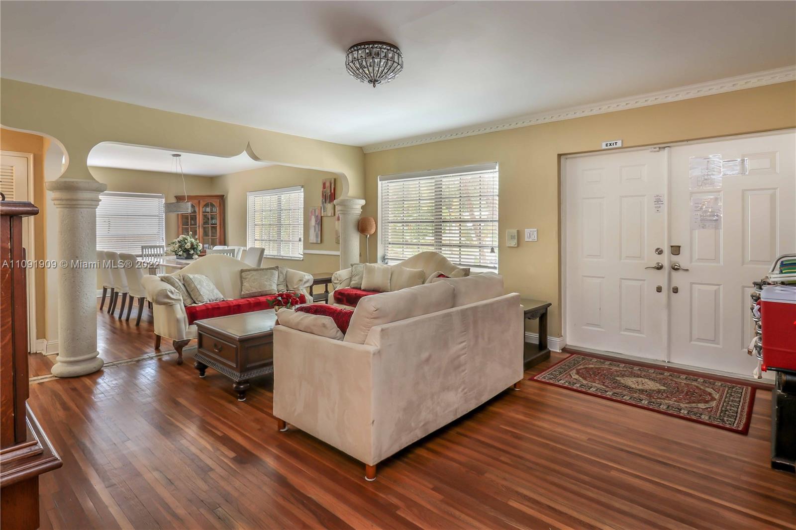 MODERN 4BED / 4BATH FAMILY HOME WITH RESORT STYLE POOL AREA, 5 MINUTES TO BEACH, DOWNTOWN, GULFSTREAM PARK OR AVENTURA! THIS HOME FEATURES FORMAL LIVING ROOM WITH EXPOSED WOOD BEAMS, FRENCH DOORS AND LOTS OF NATURAL LIGHT~ POLISHED HARD WOOD FLOORS IN DINING AREA~ LARGE FAMILY ROOM WITH MARBLE FLOORS AND LARGE WINDOWS OPENING TO PATIO WITH SITTING AREA FOR OUTDOOR DINING EXPERIENCE~ LARGE KITCHEN WITH 2 GRANITE COUNTER AREAS, STAINLESS STEEL APPLIANCES AND WINE COOLER WITH OPENING TO FAMILY ROOM AND BAR EATING AREA~ MASTER SUITE FEATURES LARGE CLOSETS AND OPENS TO BEAUTIFUL HEATED POOL/PATIO AREA. LARGE AND BRIGHT MASTER BATH WITH ROMAN TUB AND SEPARATE SHOWER. FENCED BACKYARD WITH TROPICAL LANDSCAPE SURROUNDING POOL AND PATIO.
