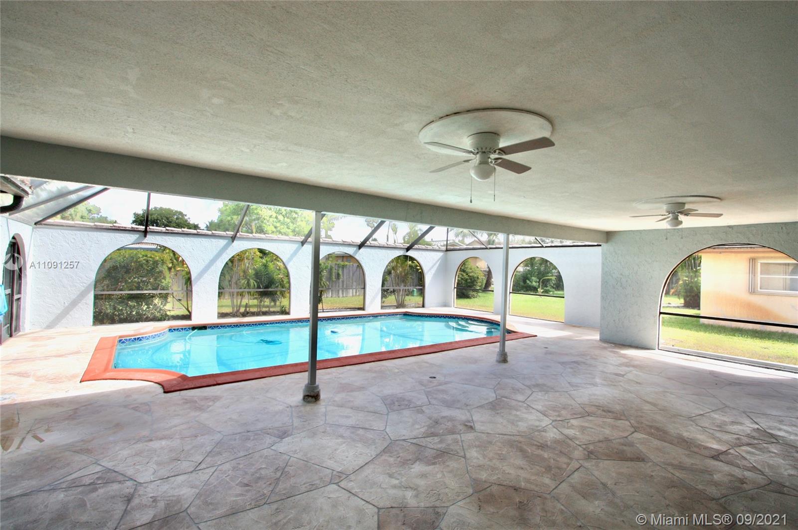 Wonderful 4-bedroom pool home in the heart of Coral Springs. So much to love about this home, from the layout and spacious rooms to the entertaining possibilities. Large kitchen/den and dining room open up to huge covered patio and screened-in pool area. Roof screen supported by concrete wall with arched screened openings. Large Master bedroom with walk-in closet and cabana bath leading to the pool area. Another room can be used as den/office. Separate utility room. Two-car garage. Acoridian hurricane shutters. Circular paver driveway. No HOA. Nice yard with plenty of fruit trees. Well-maintained home with many upgrades, some you can’t see: New flat roof over patio, new water heater & new electrical panels in 2019. New PGT windows in 2006. New A/C in 2013. New tile roof in 1997.