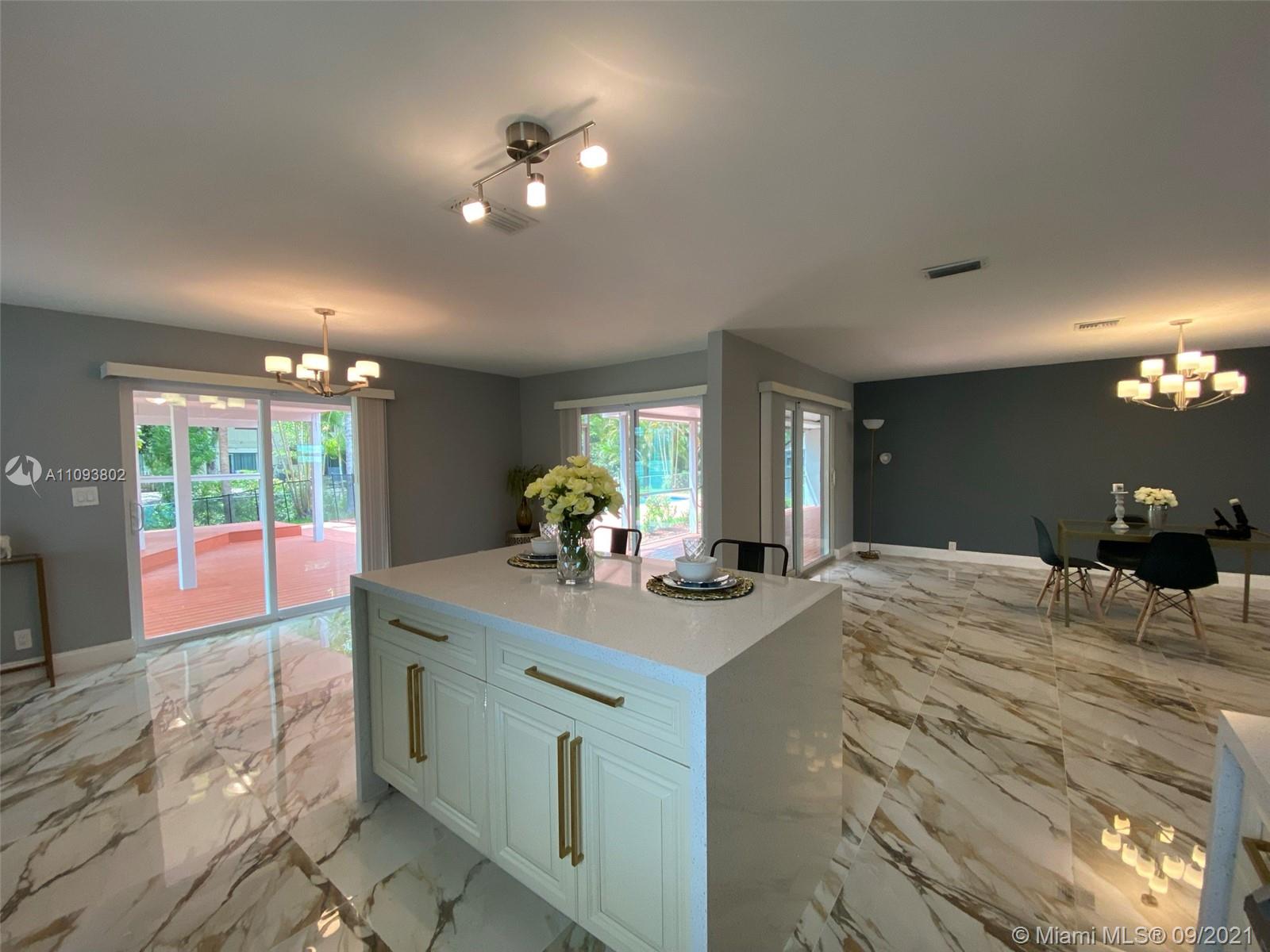 Luminous elegant one story pool home ,canal view,4 Bedrooms and 2 Bath. Totally Renovated and Remodeled from head to toe.Large free-form pool covered by a New pergola,New wood deck and Screened in patio. New Roof, New Impact Windows and Doors, New bathroom remodeling, New Kitchen remodeling, New smoke detector All these jobs done with permit. Decent size master bedroom w/walking closet. New A/C air handler.New luxury kitchen w/Quartz counter top on hard wood Cabinets & New SS Appliances. New Plumbing & Electrical fixtures. New flooring &Wood laminate in Bedrooms. 2 Car Garage with new Epoxy flooring. New landscaping with. New Pool equipment. Freshly exterior and interior painting.Fully fence. New Driveway Asphalt.New irrigation piping and equipment.Convenient location close to everything
