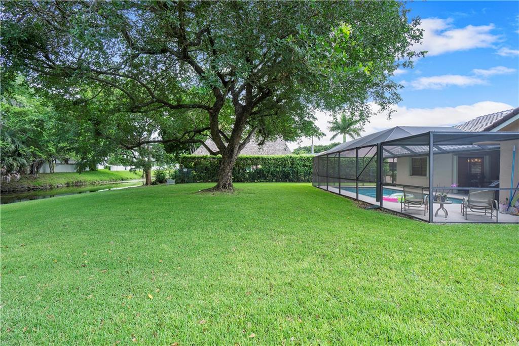 LOVE the brand NEW ROOF on this beautiful 4 bed 2.5 bath, tropical pool home on water in Oakwood (Coral Springs). Soaring vaulted ceilings & marble flooring greet you as you enter with direct views of the screened pool and patio. Updated & spacious eat-in kitchen with solid wood cabinetry, granite counters, prep island, wine rack & stainless steel appliances including a double wall oven. Wood burning fireplace in family room. Formal dining room and living room, brand new skylight replaced when the new roof was installed June/July 2021. Updated guest bathroom, stacked bedroom plan. Oversized backyard on the canal with access via kayak/canoe/paddleboat or paddleboard to adjoining waterways & the Stranahan River (C-14 canal system). Zoned for Taravella HS, Riverside ES & Ramblewood MS.
