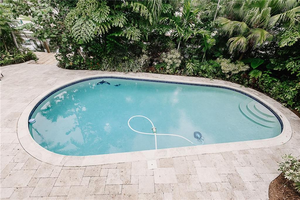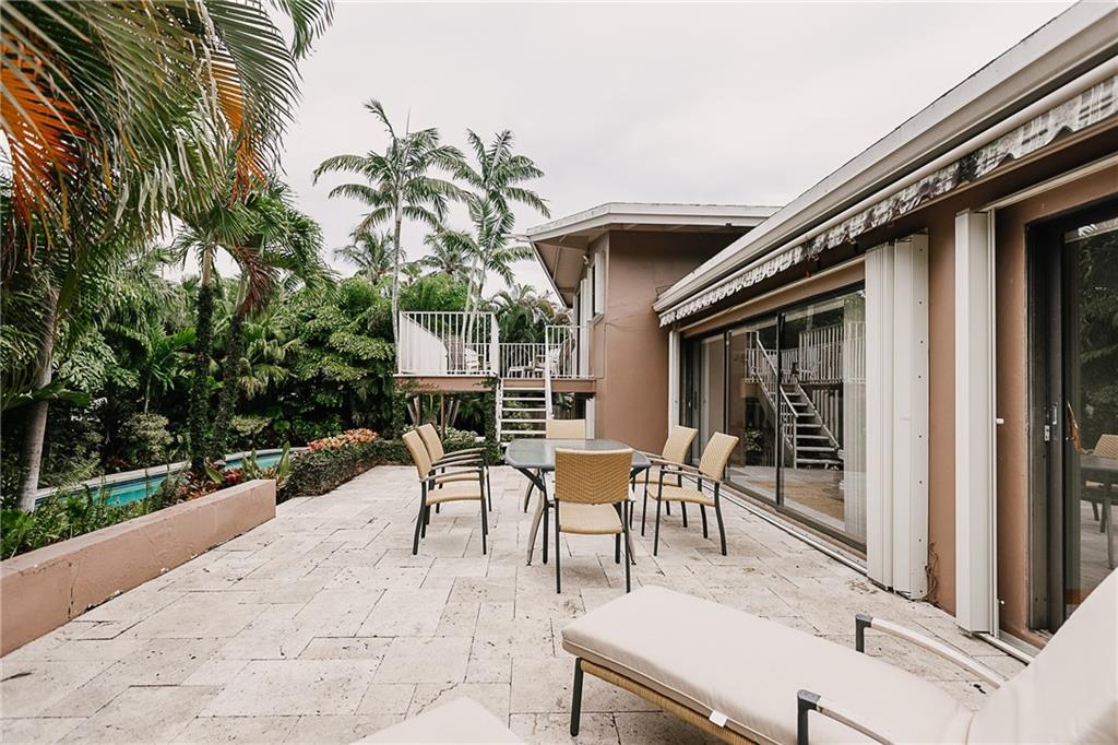 This classic Mid Century tri-level waterfront home is conveniently located in a quiet cul-de-sac, minutes from downtown and I-95. With 85ft of dock, ocean access and no fixed bridges, this property has it all! Amazing outdoor space on three different deck levels, large pool and lush landscaping for privacy. Indoors is spacious and bright with wood exposed beam ceiling and sliding doors opening to an expensive deck. The terrazzo floor has been kept in excellent condition. Separate laundry-room and one car garage. Furniture negotiable.
