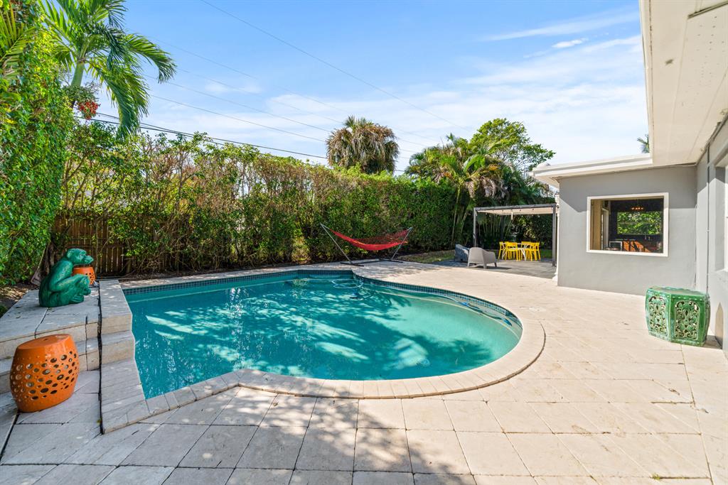 Mid-Century ranch style home South of Southern Blvd. and East of Olive Avenue. 3 bedrooms, 2.5 baths, volume beam ceilings in the living area, formal dining room, and galley style kitchen. The master suite has an updated master bath. the garage is now used for storage, motorcycle, etc...The home has all new Impact Glass doors and windows.The pool is nicely situated to the east side of the lot and was redone a few years ago. A split floor plan with 2 guest bedrooms and a full bath. The laundry is inside, and there is also a powder room. This home is a perfect renovation project in a great area, on a nice street. Sitting nicely on the 7200 sq. ft. lot, with a sizable front, and back yard space. The floor plan is very workable. The garage can be extended to accommodate a vehicle.
