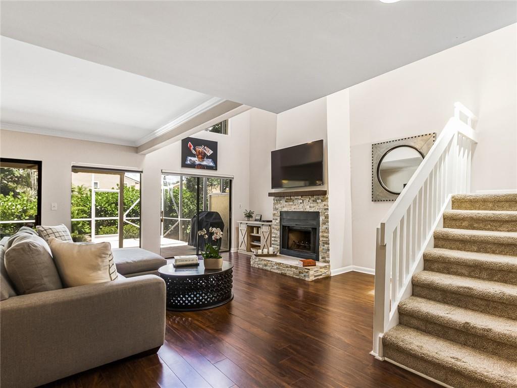 WATCH THE SLIDESHOW. This remodeled and gorgeous Brook Haven townhouse is new on the market, and located in a tranquil enclave of just 25 fee simple townhomes in Boca Del Mar. This one is “Best in Show”. Newer roof and AC in 2016. The living room fireplace was updated in 2017. Spectacular vaulted ceilings with wood trim, transom windows, and a big open floorplan make this one light & bright. Enjoy beautiful wood flooring in the main living areas, with carpet upstairs in all 3 spacious bedrooms. The remodeled covered balcony off the master bedroom is under the huge enclosed patio that was rescreened in 2015. The gourmet kitchen features newer SS appliances, white cabinetry and granite counters. The breakfast area is currently used as a fitness area. Amenities include the pool and clubhouse.