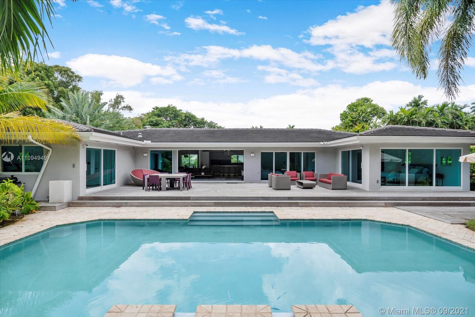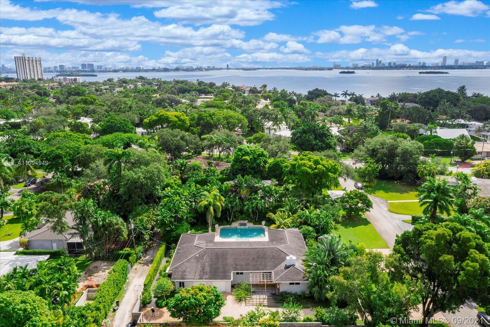 Welcome to a lush oasis in the exclusive Miami Shores neighborhood,east of Biscayne Boulevard. A gem,this gorgeous 5 bed/4.5 spacious home sits on an oversized half acre lot,complete w/ a brand new automatic fence that frames the property for complete privacy.The dream-like landscaping transports you to another place and offers tranquil seclusion. Inside you will find a sprawling 3,226 sq ft. layout featuring a remodeled gourmet kitchen,designer, bathrooms,impact windows, new roof & pool area designed for paradise. Escape from reality in your master suite or nestled by the fireplace in your living room.This smart home doesn’t skip out on any luxuries with in-law or nanny's quarters,a natural gas generator,2 car garage, tropical landscapin, an outdoor pergola area ideal for entertaining.