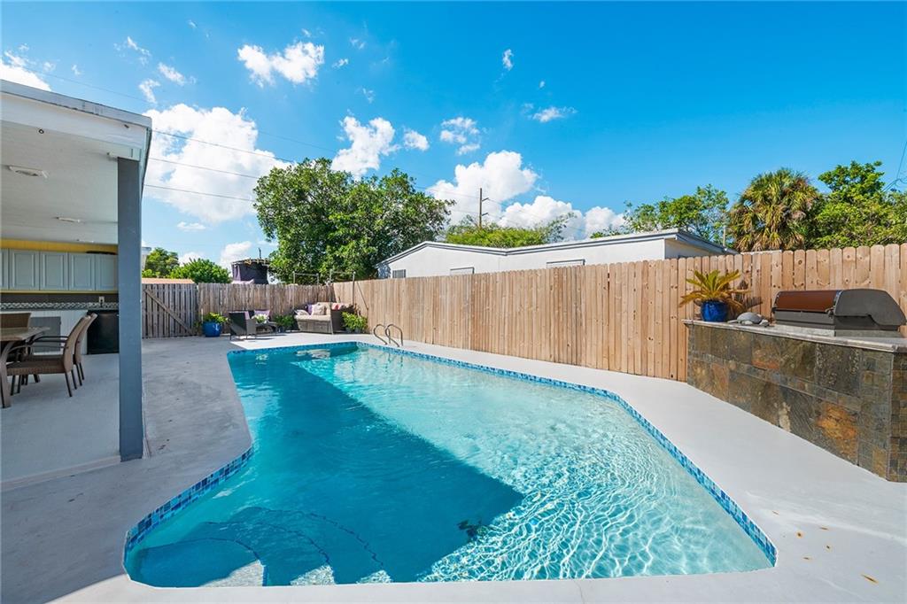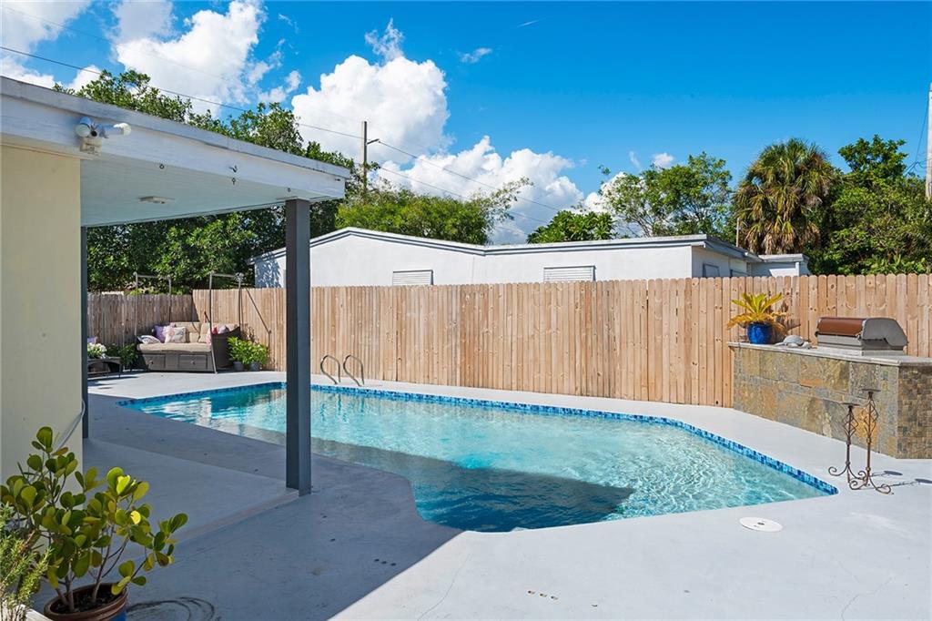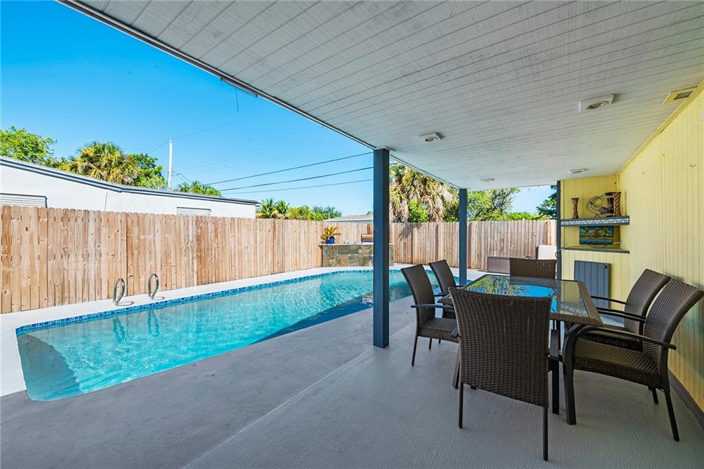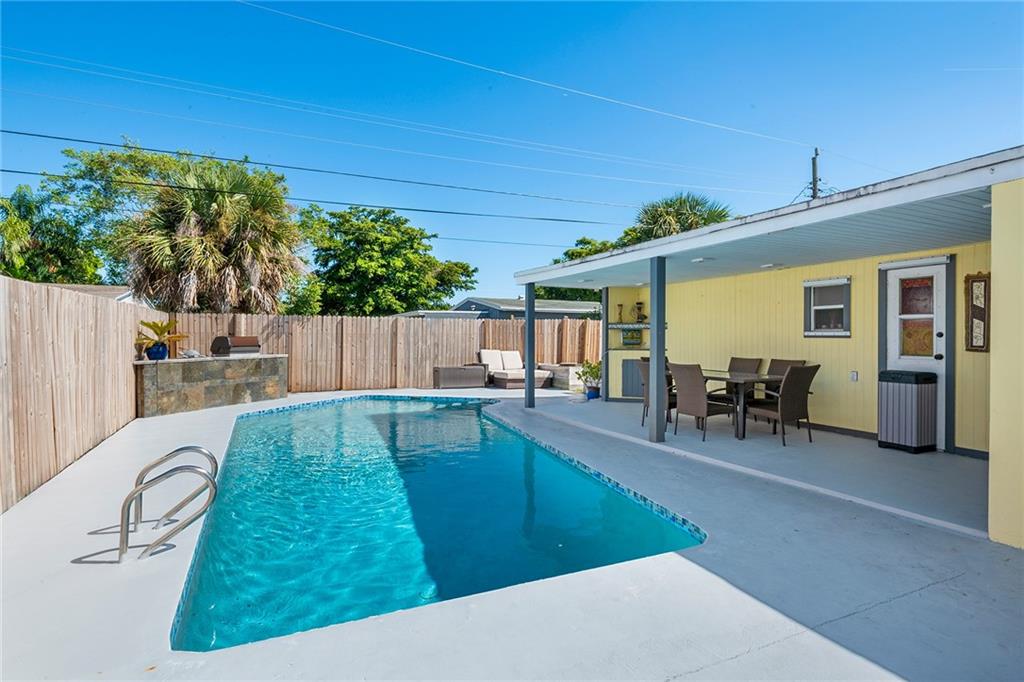 EXTENSIVELY REMODELED POOL HOME. HOME UPDATED WITH NEWER KITCHEN CABINETS, GRANITE COUNTERTOPS AND STAINLESS STEEL APPLIANCES. BOTH BATHROOMS COMPLETELY REMODELED. NEW CENTRAL AIR AND DUCTS IN 2017. UPDATED ELECTRICAL PANEL. SALTWATER POOL RESURFACED IN 2016. GREAT POOL AREA WITH COVERED PORCH AND OUTDOOR KITCHEN AND BARBEQUE. HOME HAS A 3-WAY, SPLIT BEDROOM PLAN. HUGE MASTER BEDROOM WITH WALK-IN CLOSET. AMPLE CLOSET SPACE. OVERSIZED DRIVEWAY WITH ROOM FOR RV OR BOAT. SELLER IN PROCESS OF INSTALLING NEW FLAT ROOF AND SHINGLE ROOF. SHUTTERS FOR ALL WINDOWS. NEW CARPETING IN BEDROOMS. NEW INTERIOR PAINT.