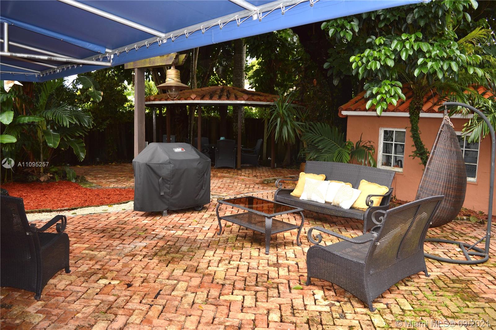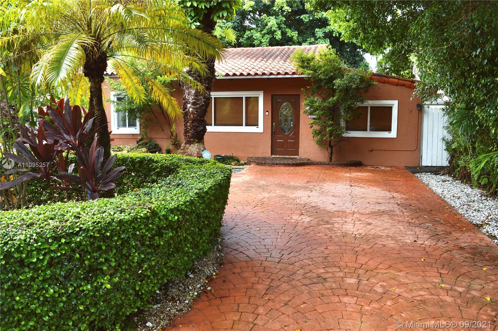 Wonderful and centrally located Little Gables residence! This 3-bedroom/1-bathroom home with Spanish terracotta tile and beautiful wood floors has a great spacious floor plan with large dining and living room areas. The back yard, which is laid out with Chicago brick, is ideal for entertaining. It also has a gazebo for your enjoyment. Plenty of parking space with a half circle paved driveway. Move-in ready!