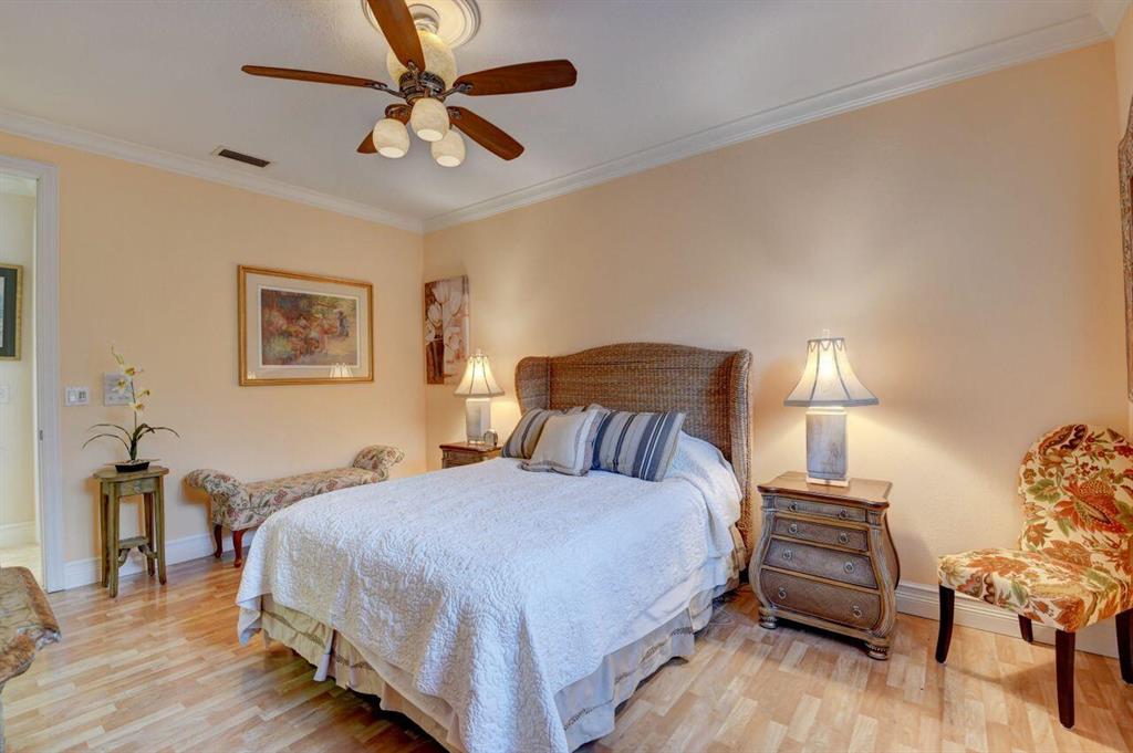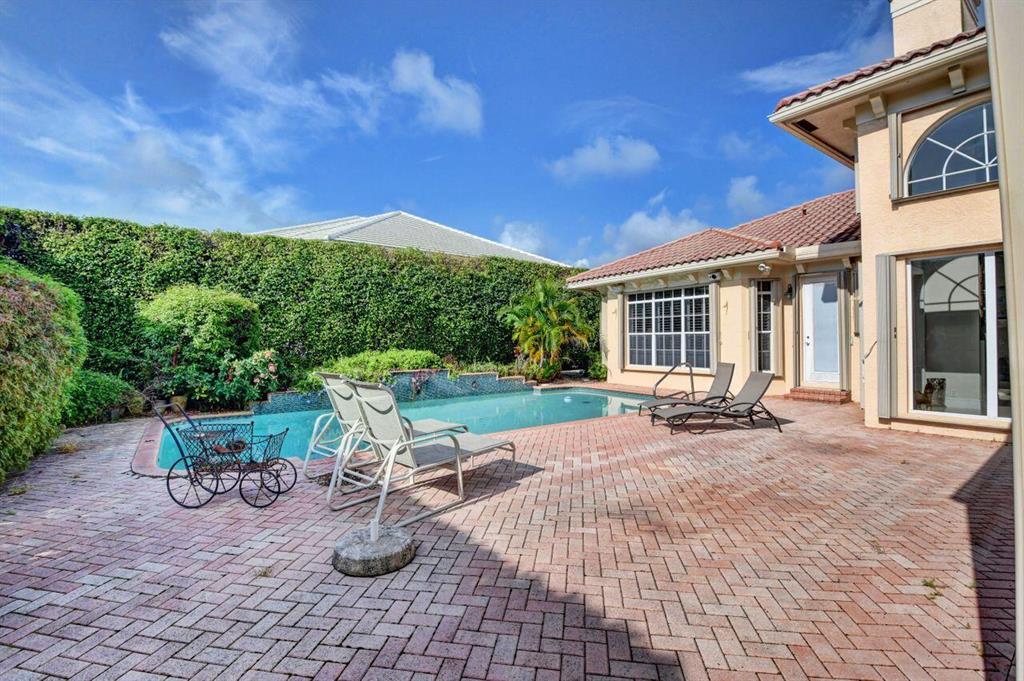 Over 5100 square feet in this immaculate bright, spacious estate home! 4 bedrooms PLUS an office, 5 and a half baths, large private patio with resort like pool. Master bedroom boasts 2 bathrooms and 3 walk in closets. All guest bedrooms ensuite in this split plan home. Separate dining room plus eat in kitchen with family room including wet bar for entertaining. Outdoor room glassed to be indoor/outdoor. Full hurricane protection. The exclusive Bocaire Country Club is a boutique club of only 239 homes, boasting no tee times on a renowned championship golf course. Plus Tennis, fitness, social and dining. A rated School district, close to beach, shopping, arts, restaurants, Atlantic Ave and Mizner Park. MANDATORY MEMBERSHIP Fees listed under documents.