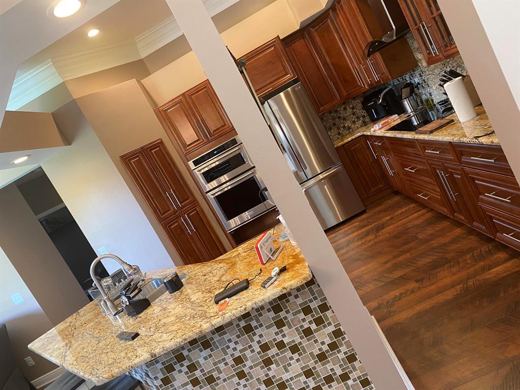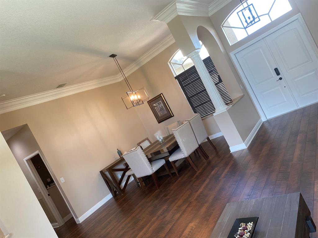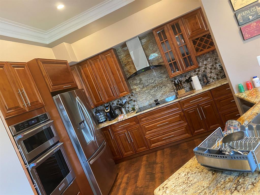 Move in ready Ranch with a Modern Farmhouse Rustic appeal. This 4 bedroom 3 bath home with three car garage boasts a state of the art kitchen with all stainless steel appliance, wall oven, microwave, glass cooktop single glass washer and granite countertops. The master suite has large sliders to the private backyard retreat, custom wood closets with double barn doors. The spa like master bath has a stand alone whirlpool tub frameless glass showers concrete vanities & private commode. Impact garage & entry doors , accordion shutters provide hurricane protection. Updated electrical custom lighting, laminate floors and double crown moldings gives that designer feel. New gutters, security cameras and custom blinds are just some extra perks. Schedule your showing today, Motivated seller.