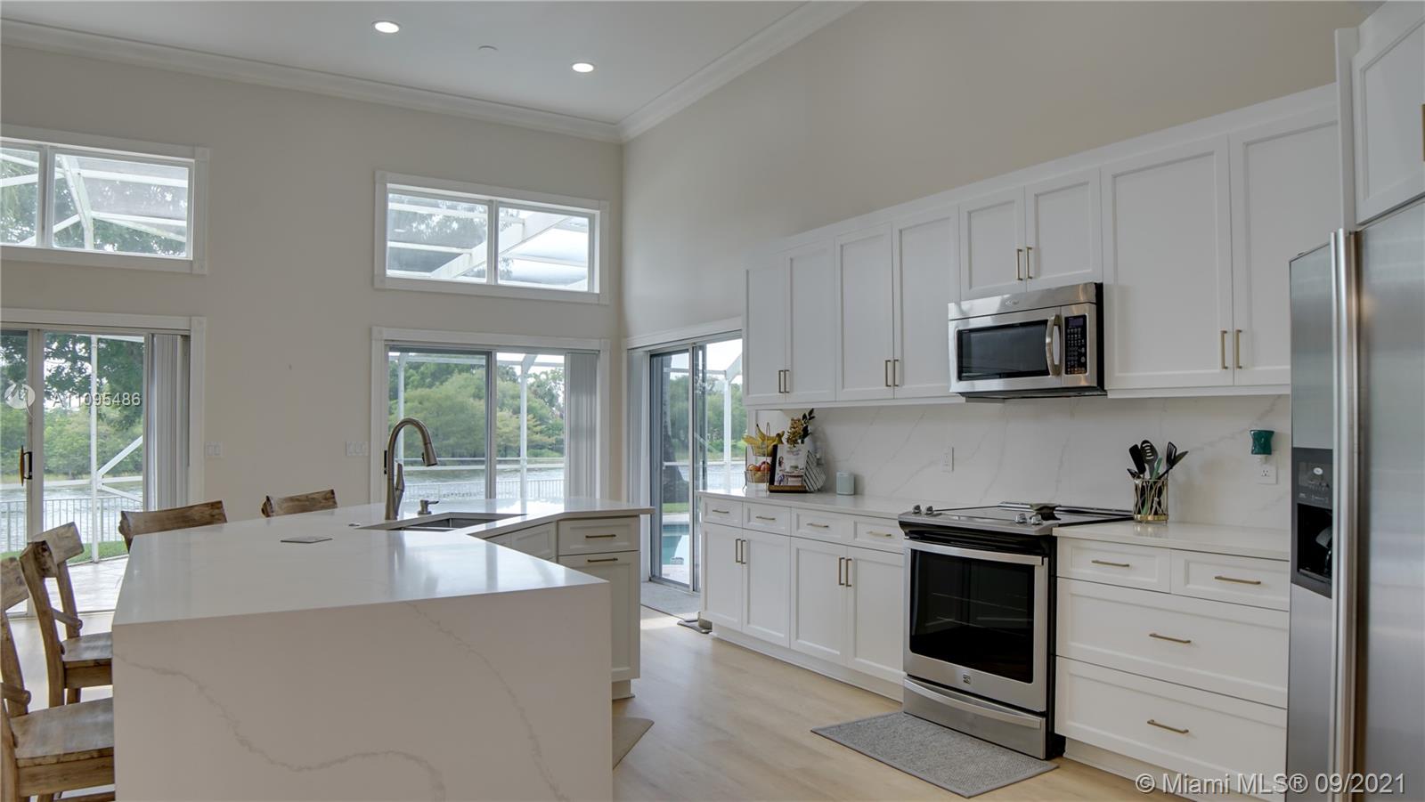 Updated 4/3.5 gated pool and lake home on an oversized pie-shape lot with 133 feet of lake views. Open floor plan with 18' ceilings and lots of natural light. Master bedroom and guest room on the first floor. Brand new open kitchen with quartz countertops and oversized island with waterfall. Plantation shutters, impact windows, accordion shutters, and whirlpool master tub. Parks and walking paths around the entire Silver Lakes Community.