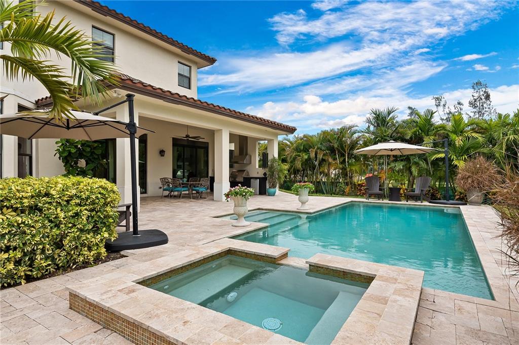 A Private community of Paragon Estates with a spacious five bedroom 4.5 bath. This split floor-plan features high ceilings accompanied by beautiful ceiling details, Porcelain tile throughout main living areas and Wood in the bedrooms. A large eat-in kitchen with two islands and Granite counter tops. Outdoor Oasis features a luxury pool, built in BBQ area and completely secluded & private backyard with lush landscaping. The spacious backyard and large covered patio provide a great space for entertaining. Great views from the operable balcony. Three car garage and impact glass throughout.