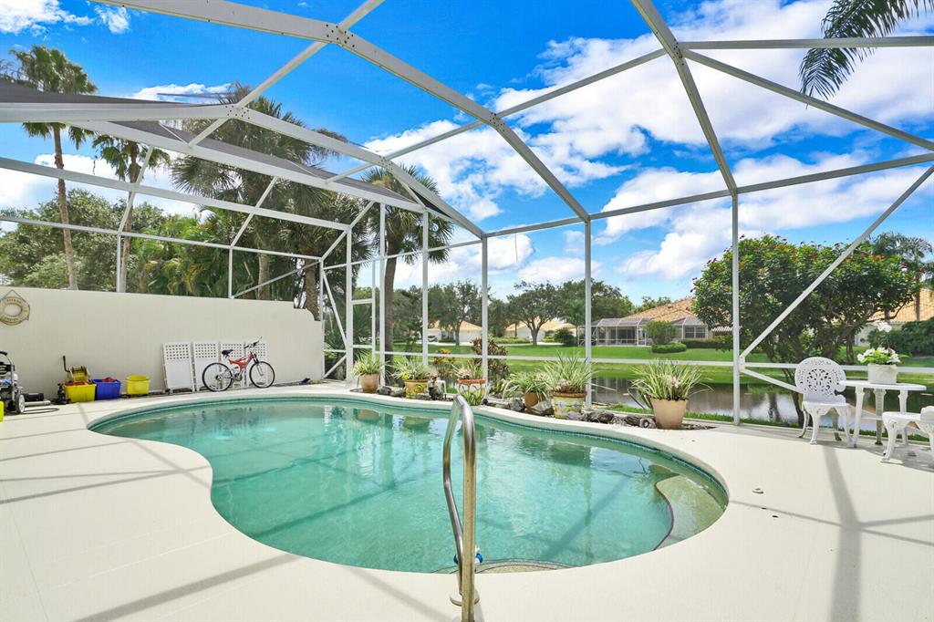 Fantastic 3 bedroom 2 bath 2 car garage pool and lake home. Upgraded kitchen with granite counters. All time thru out the house. Open concept with new hanging lights and high hats. A special separate electrical box for hookup to a generator incase of electric outage. All appliances are newer. Tinted windows. Bedrooms have Pergo floors. 12 ft by 6 ft wall to wall mirror. New pump for pool, Central vacuum. Screen in pool and sprinklers.