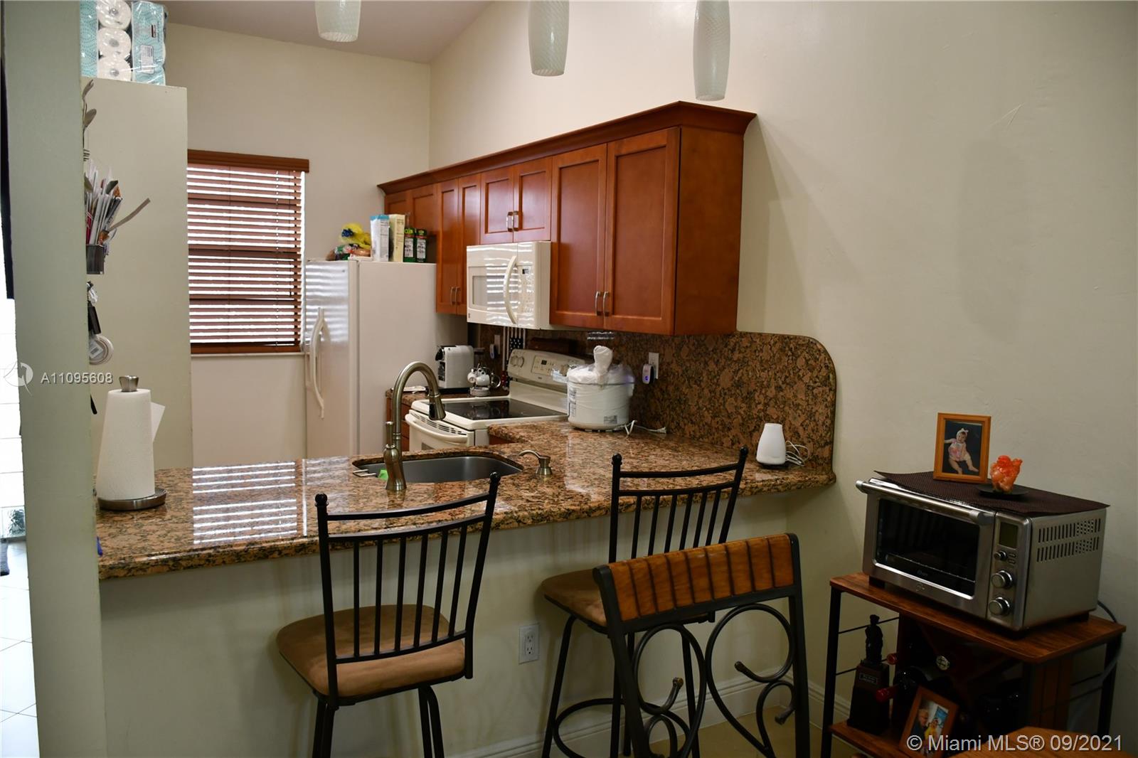 Great opportunity! Spacious & totally updated 2 bed 2 bath one story townhouse, rear covered patio that overlooks community pool and playground! Neutral 16*16 tiles throughout house and patio, solid wood kitchen cabinets, granite counter-tops and large pantry, updated bathrooms, electrical panel, newer efficient washer/dryer along with Trane A/C & duct work, hurricane shutters. Two parking spaces in front of property along with a private court yard by entrance. This property is in great condition and a must see! Community is centrally located and offers plenty of amenities with low HOA fees.