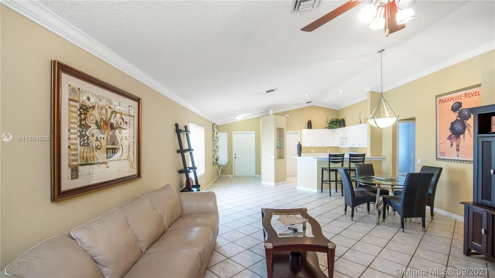 Beautiful 3 BD 2 BR home in Savannah, a gated community Weston, FL. The living space features a perfect ambiance with natural light, bolted ceilings, and a 2 car garage. The main room boasts an ensuite bathroom and walk-in closet. The exterior patio/ lounge area is an ideal spot for easy summer living. The perfect suburban area that you are looking for! Savannah’s resort-style recreation facility, Savanna Commons, maintains a host of amenities including a lap pool, resort pool, waterslide, interactive kiddy pool, and baby pool. Residents also enjoy access to a nine-hole miniature golf course, multi-purpose field, roller hockey rink, tot-lot playground, and a basketball court. Schools in the area are top-notch.