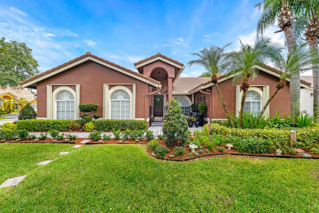 One of the largest 3 bedroom models at 1,899 square feet, in the sought after neighborhood of Brookside Isle in Coral Springs! This oversized corner lot has amazing curb appeal and continues as you walk through the front door and welcomed by an open style floorplan with vaulted ceilings. The updated kitchen features modern cabinets, GE stainless steel appliances and granite countertops. There is tile throughout the main living space and laminate flooring in the bedrooms. The primary suite has a large walk-in closet, oversized walk-in shower and a wood vanity. The patio boasts privacy while the sitting area wraps around the backyard and has an electric awning for a relaxing environment in a beautifully manicured setting. The many additional features include accordion shutters, water heater
