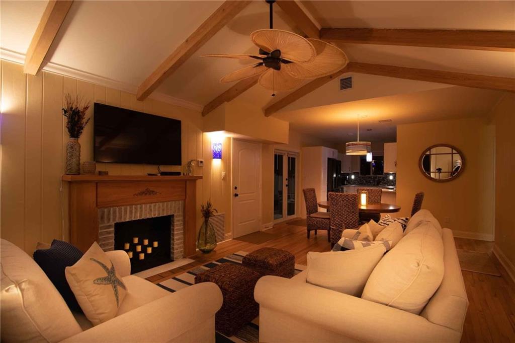One of the most stylish and complete MAJOR home renovations, whilst retaining the coastal charm and classic Rio Vista integrity. Beautifully furnished. All new - roof, electrical, plumbing, a/c, garage, driveway, impact doors/windows, fencing, landscaping, exterior and interior paint, bathrooms and fully equipped kitchen. Master suite with king size bed, large walk in closet and french doors opening to the beautifully designed backyard, with plenty of room for a pool. Guest bedroom with queen size bed. Spa like bathrooms and phenomenal zen landscape, water features and lighting. A modern, light and airy aesthetic, yet with the time honored appeal of hardwood floors, exposed high beamed ceiling, brick fireplace and a welcoming front porch. Lucrative airbnb potential. A pleasure to show.