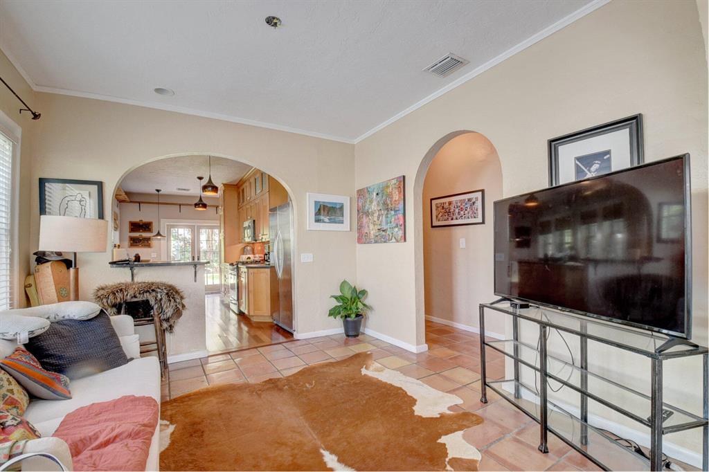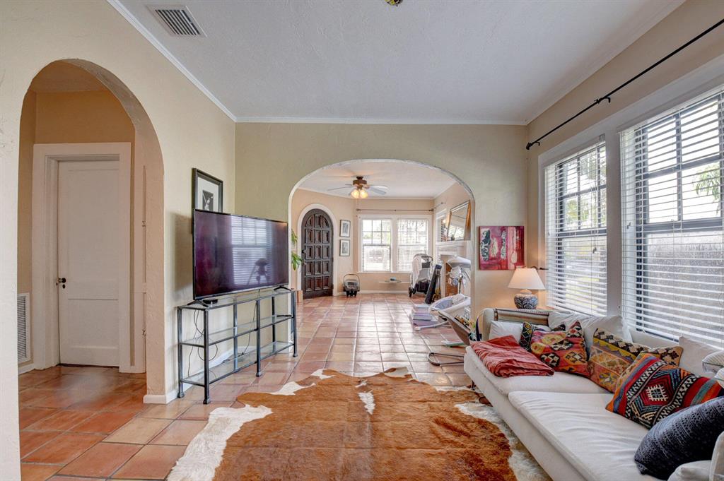 Beautiful updated Spanish Mission style house in sought-after Historic Flamingo Park: 2 Bed/1 Bath + an extra room space for an office, PLUS a detached GUEST cottage 1 Bed/1Bath, PLUS a garage! A charming front porch with archway and a unique front door lead to a spacious living room/dining room featuring a stylish fireplace as the center of attention. Windows (recent installation of impact windows in majority of house), give an amazing natural light inside! Beautiful modern kitchen with Gas stove, stainless steel appliances and a cozy breakfast nook with a view on the backyard. Updated bedrooms with new floors, no carpet. Full size modern washer & dryer. French doors lead to a well maintained private yard.