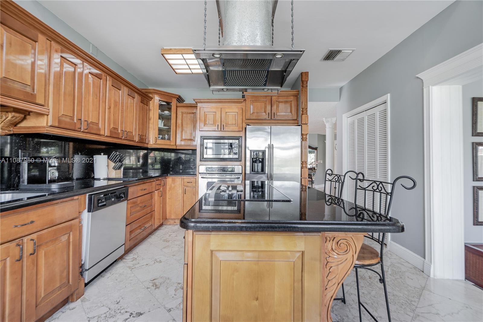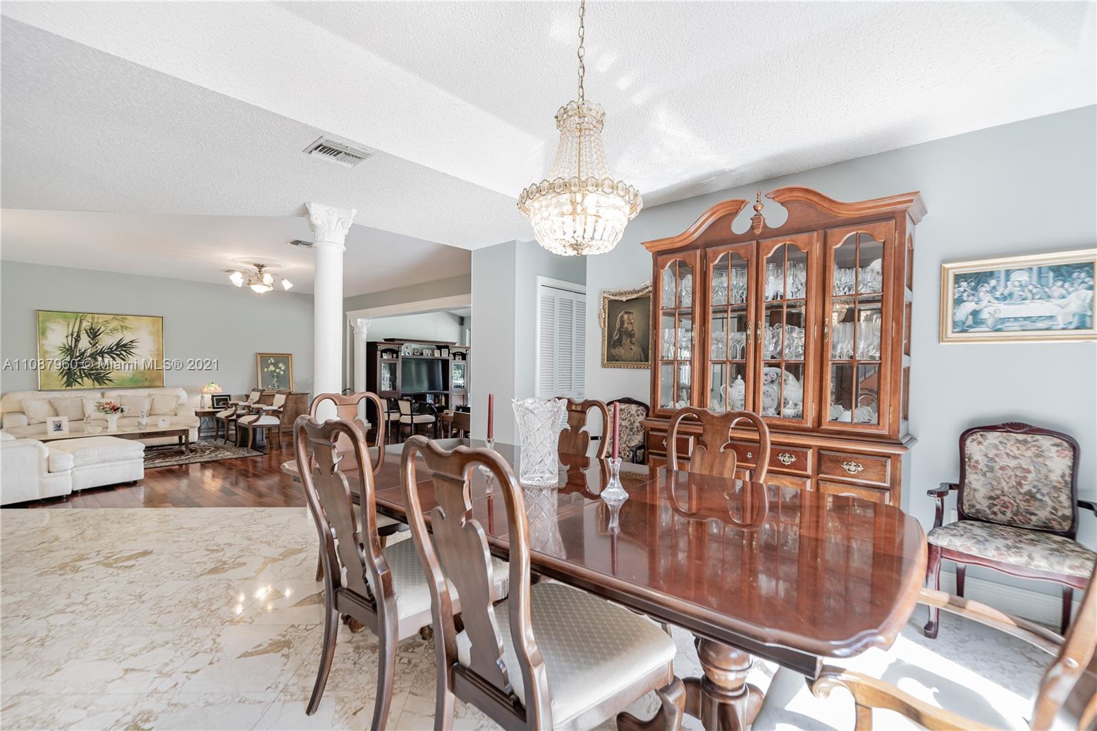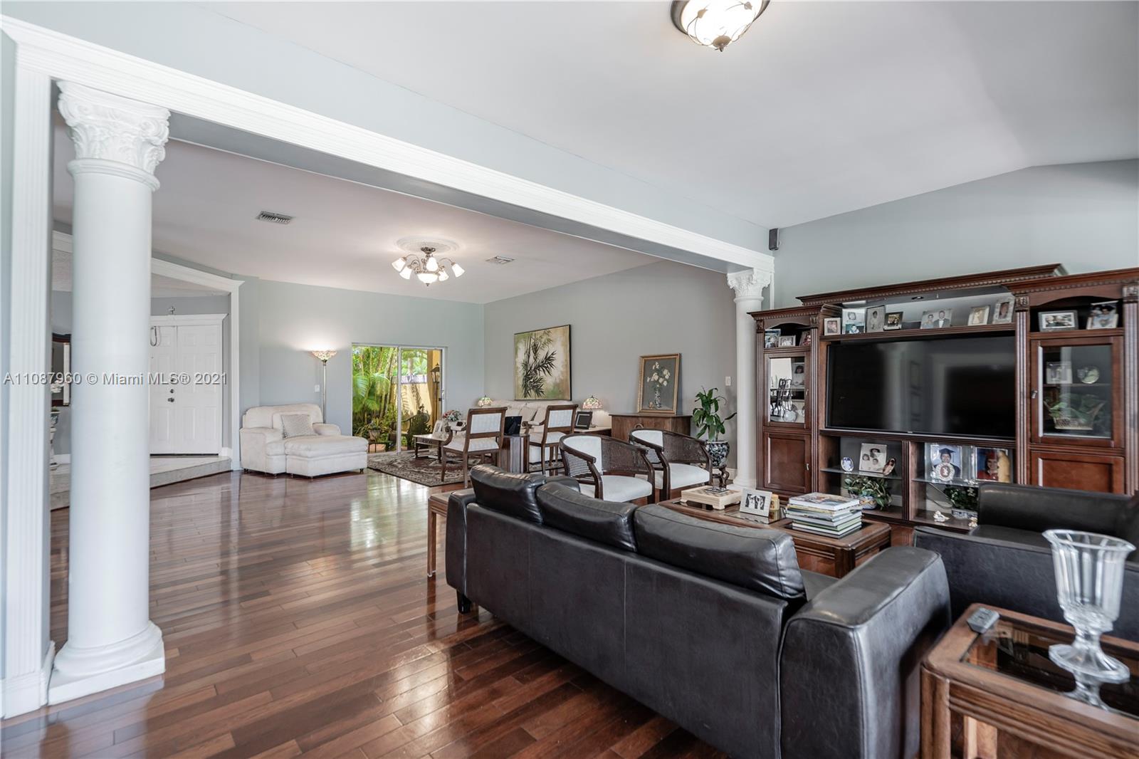 Outstanding 4/3 single family 2,967 sq ft home directly on Silver Fox Golf Course in prestigious Doral Dunes. Beautiful unobstructed golf/lake views. Very spacious formal living, dining, added family room and kitchen w/ tall bay windows, informal dining, island, wood cabinets, granite counters + SS appliances. Brazilian cherry wood and marble in first floor. Chicago bricks and canopy in relaxing patio. Wood/wrought iron stairs up to bedrooms. Huge master with terrace, marble bathroom (shower, jacuzzi, bidet). New roof under warranty till 2028. Brand new A/C. Gated community with 24hr guard. Access to Doral Park Country Club w/excellent amenities: pool, gym, tennis, basketball, volleyball, kid's playground, sauna, 2 restaurants, bar and more. Must see it! Call listing agent.