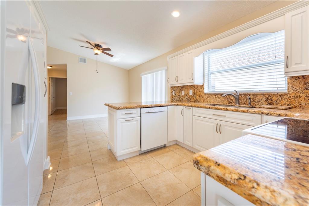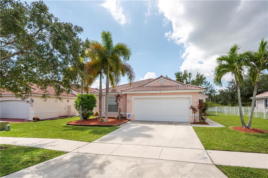 Make this 3bdr/2bath 2 car garage on a serene waterway yours. Updated kitchen with wood cabinetry and granite counters . The Kitchen is complete with a breakfast bar that overlooks the family room. Three way split bedroom floor plan. Updated Master bath boasts a oversized walk-in shower and dual vanities. Large Master bedroom with a walk in closet. The 3rd bedroom has French door entry and can be utilized as a home office or as a bedroom it does have a closet. Tile floors through all the main living areas and the third bedroom, wood like flooring in the other bedrooms. Accordion shutters for complete storm protection Fully fenced backyard. Estancia Community has a 24 hour guarded gate, clubhouse, pool, kiddie pool and other amenities. Entrance located on 186th Avenue and Pines Blvd.