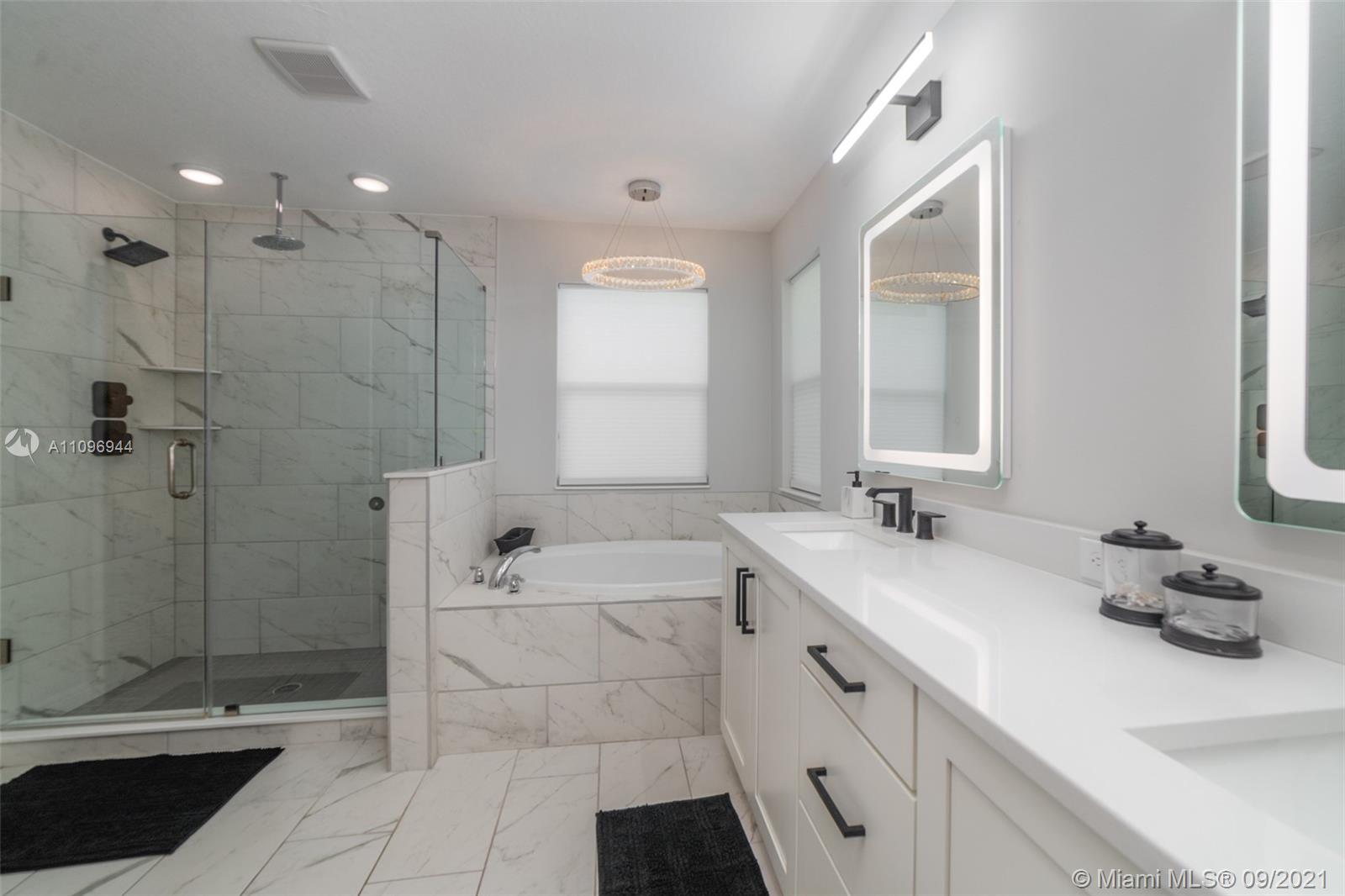 Contemporary custom finished home. 4 Bedrooms and 2.5 baths PLUS a BONUS ROOM. Open concept with wood floors throughout. Custom Gucci wallpaper in powder room. Main room French doors and vaulted ceilings. Backlit bathroom mirrors. Large custom walk in closet. Large fenced backyard with covered Lanai and enough space to build a pool. 3 Car garage plus driveway.