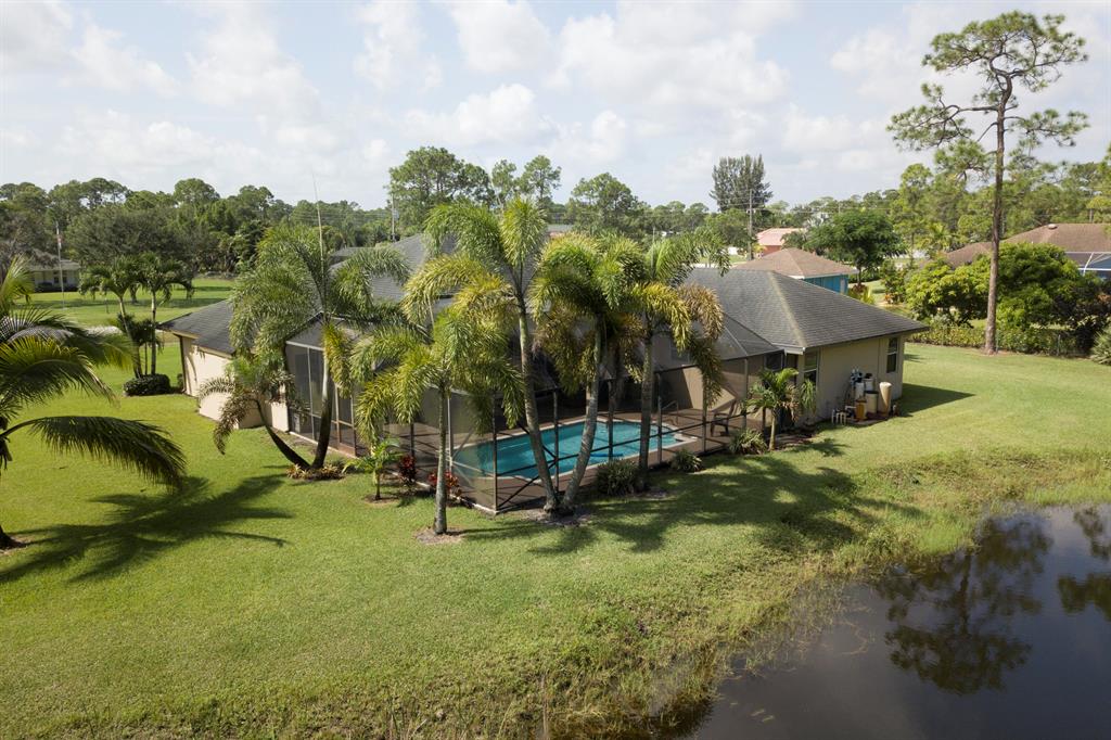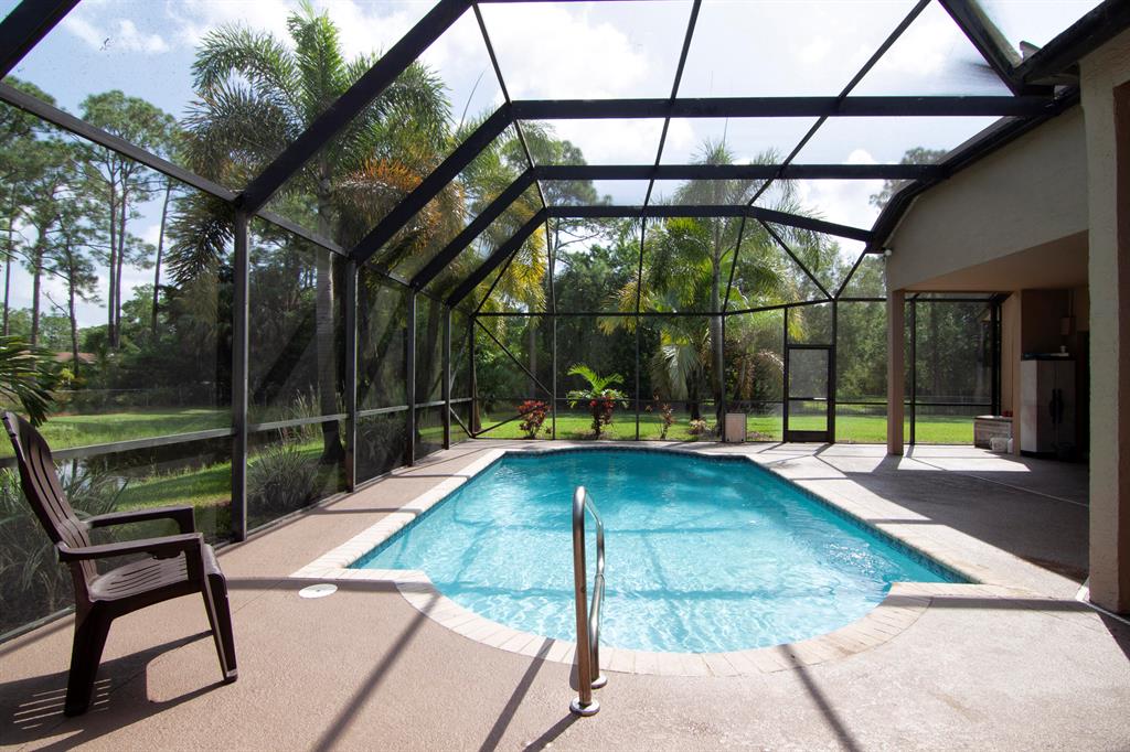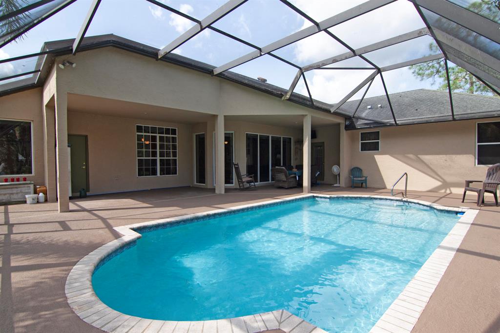 Large CBS home on nicely manicured lot on paved road. Original owner is selling this beautiful home. Four bedrooms, 3 bathrooms. Separate living room, dining room and large family room with open kitchen. Screened pool and nature pond on 1.19 acres. Storage shed , sprinkler system, tile and wood floors, and much more. No HOA fees or club fees, See why this wonderful community in area of high end homes and developments is so special. Ready for its new owners.