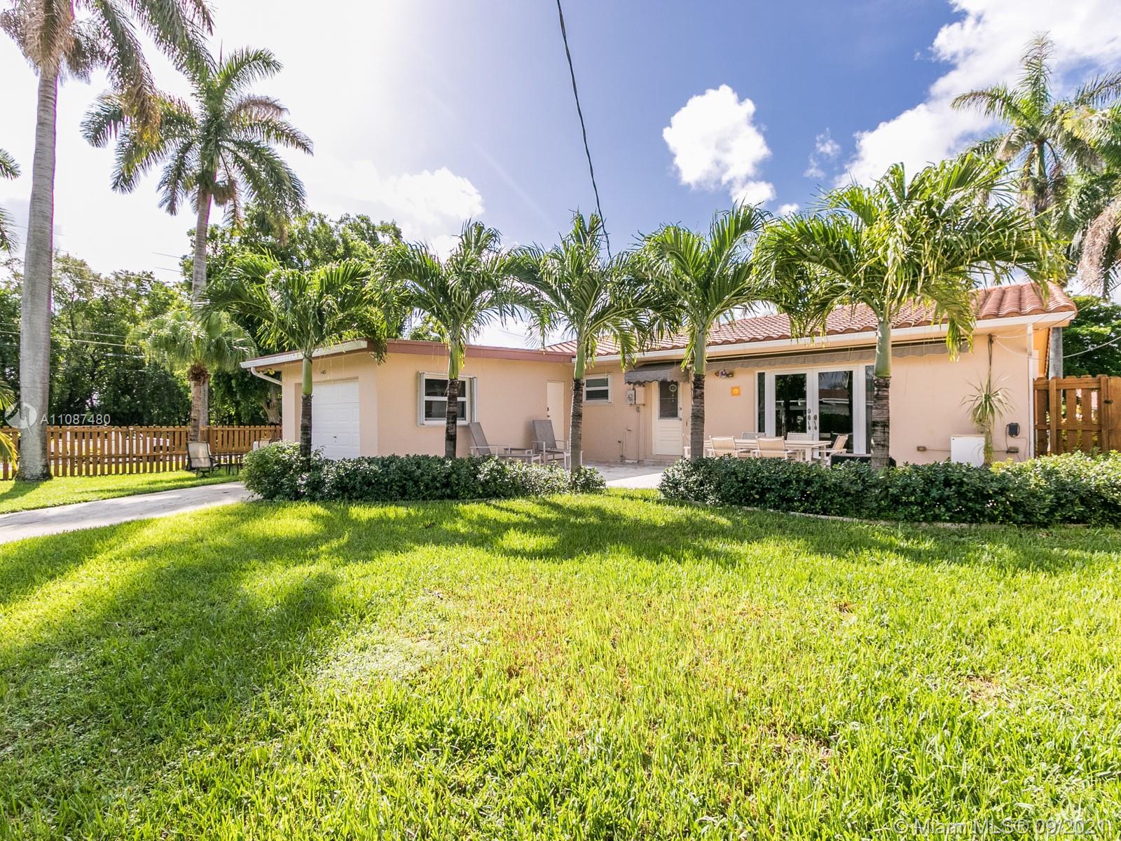 Location is the key to a happy life! 2nd generation family owned, Corner lot, Circular driveway. Minutes from the intracoastal & beach. Warm & inviting, move-in ready, Home layout allows for natural lighting throughout & open feeling. Ceramic tile floors. Updated kitchen includes sleek medium toned wood cabinetry W/plenty of pantry space & granite countertops. Modern designed SS vented stove hood, SS appliances. Newly renovated Bathrooms include granite countertops, decorative floor/wall tiles & frameless glass shower/tub doors. New recessed lighting throughout main house. Spacious bedrooms & closets. Impact windows/doors. Fenced in yard with backyard patio & retractable Sunsetter Awning. Close to parks, Golf, Shopping, Casino & Horse Track, major highways & minutes from FLL airport.
