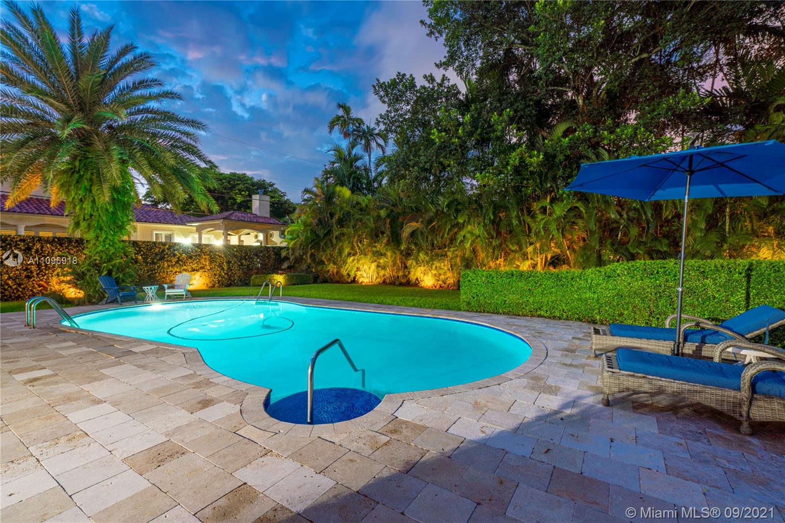 Live in your own private paradise! Elegant Coral Gables 1939 estate-style home on prestigious Granada Blvd. One-of-a kind 5 bedroom 4.5 baths on a 20k sq ft lot! You will approach this elegant home on its wide Herringbone paver driveway & Keystone front door entry. This expansive home boasts a lg living room opening to a dining room w/vaulted ceilings & floor to ceiling windows. Renovated kitchen w/Wolf appliances & luxurious walk in pantry Impact windows/doors, professionally designed interior/exterior lighting & lush landscaping. Enjoy an afternoon by the resort style pool-patio area, then head over to a private brick courtyard w/a beautiful orchid garden & mature trees where the outdoor barbecue & romantic lighting making this the perfect spot for hosting any day or nighttime event.