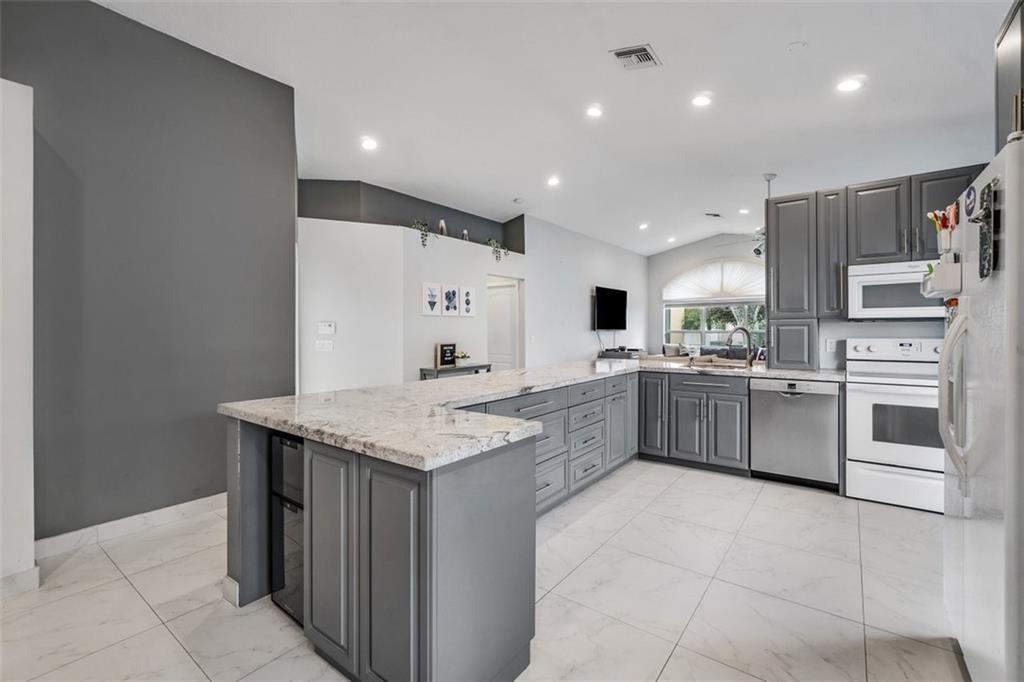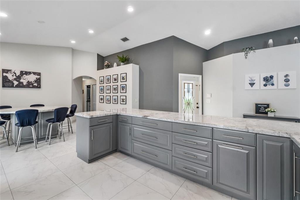 Updated 3 bedroom 2 bath Single Story Home located in the Gated Community of Kensington Green. Walk through your private gated entry to this immaculately kept move in ready home. A/C was replaced in 2020. Large windows with Light Filtering Dual Shades, volume ceilings, open floor plan, great for entertaining, screened back patio, Master bathroom has a frameless glass shower with a spacious walk-in closet. The Kitchen is upgraded with granite, self-closing drawers and an abundance of cabinet space. Close to shopping, restaurants, and major expressways. In addition, Kensington Green amenities include a community pool, outdoor fitness area and a pet area all with a low HOA fee that includes front lawn grass trimming.