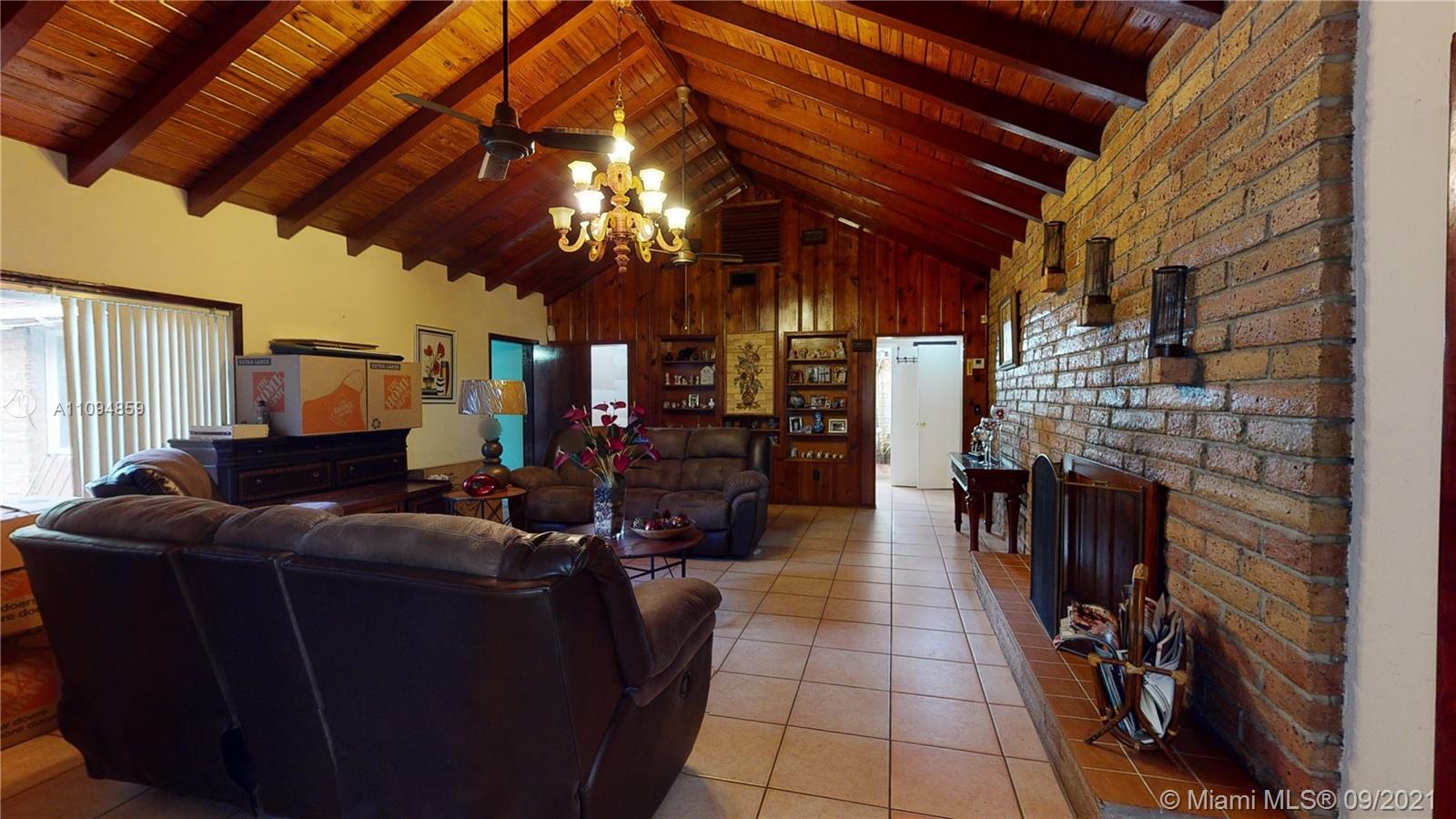 Spacious single family property located in Hialeah on a 10,000 sqft lot. 2-entry parking for 8-10 vehicles. Cozy living room with wood and brick wall panelling where you can enjoy a beautiful lit country-style fireplace. Kitchen with granite L-shaped counter tops, multiple cabinetry, all Stainless Steel appliances included. 3 independent bedrooms and 2 bathrooms, plus other rooms which complement this ideal home. Exterior patio with tasty landscape and private round pool, offers a great place for entertainment. Close to restaurants, supermarkets, schools, gas stations and parks.