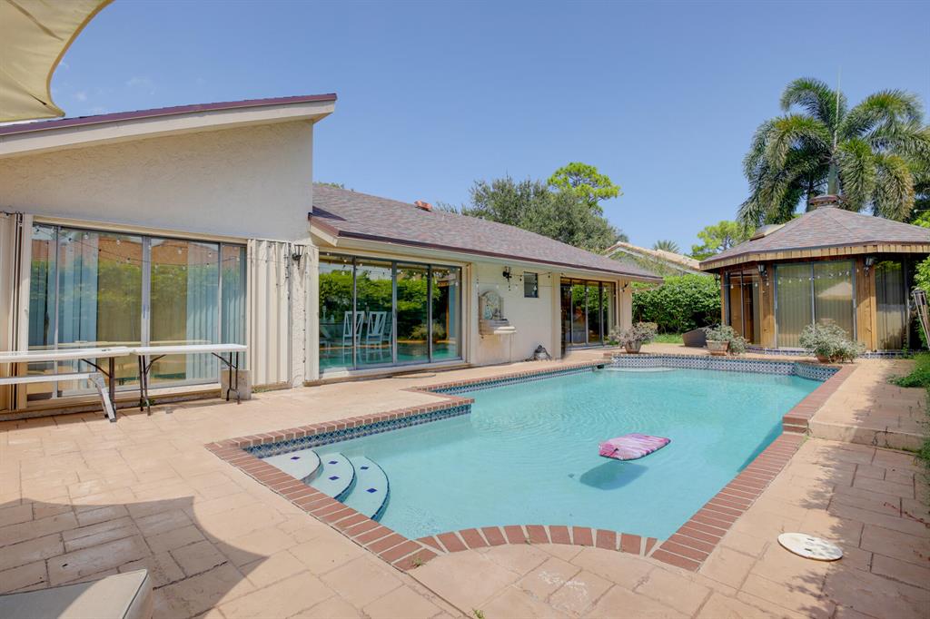 Beautiful home great location with an open floor plan and vaulted ceilings. 3 bedrooms n 2 baths and a 500sqft Gazebo with electricity and ac perfect for and office, gym or ideal as a 4th room or entertainment room. Home has a an oversize pool with breathtaking landscape. Home is fenced in the back yard. Timbercreek is a family oriented community with beautiful lakes to walk and quiet neightborhood. Centrally located close to town center mall in Boca and much more. This home is 10 miles from the beach and centrally located between Fort lauderdale International Airport and Palm Beach International Airport. Excellent schools: Calusa, Omni, and Spanish River. New Roof, replaced on year 2021. Electrical circuit panel replaced on 2019. Accordian hurricane shutters and AC unit replaced.