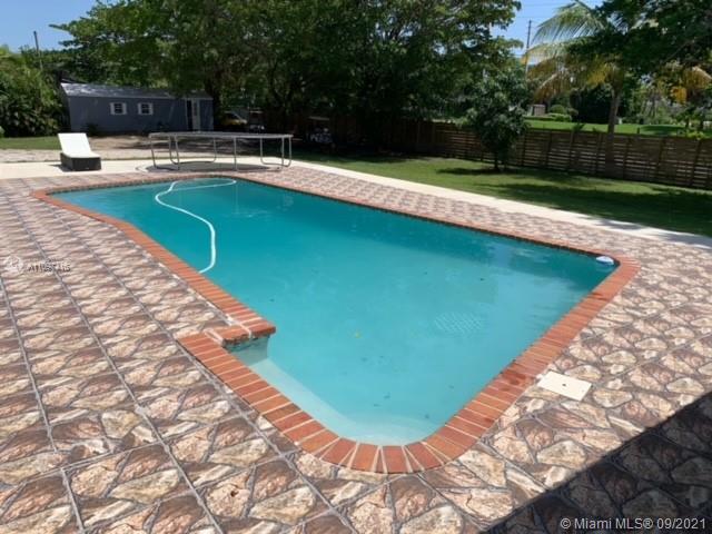 Beautiful corner lot home in the desirable area of Southwest Ranches! This 4/2 pool home sits on almost 1 acre of land and features an open kitchen with granite countertops, stainless steel appliances, kitchen island, open floor plan, great pool, and a huge yard with paved patio. Home has a new well water system and a septic tank. Hurricane impact windows with newer roof installed in 2020 and newer A/C. Huge backyard is super private with great outdoor space that features a covered terrace with a kitchen stove, sink, microwave, refrigerator, and TV great for entertaining family and friends. Stationed in the back is a storage shed that is being used as a studio with a bedroom, bathroom, kitchen, and living room. Completely fenced. NO HOA!!! Boats & RVs welcome!!! Look no further!!!