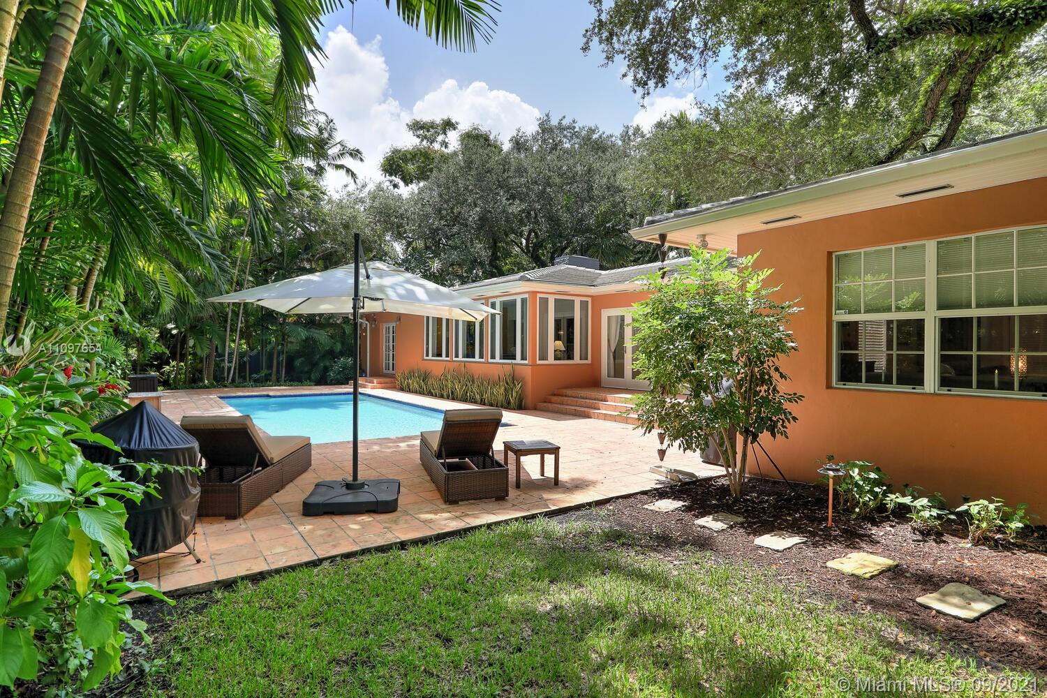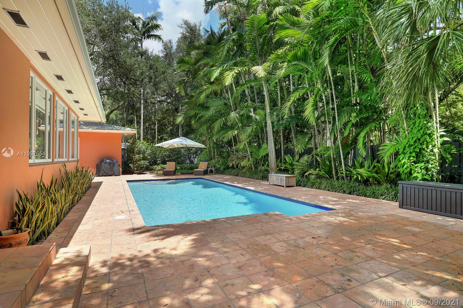 Lovely home on a quiet, tree-canopied cul-de-sac in the coveted Utopia section of lush South Coconut Grove. HOA offers private police patrol. Spacious, light-filled living spaces w/beautiful wood flooring, fireplace & large windows overlooking the tropical garden. 2690 square feet per appraisal w/formal living, dining & family room + 3BR’s w/en-suite baths. Custom kitchen features high quality wood cabinetry, gas range & separate breakfast room. Oversized master suite w. sitting area, 2 walk-in closets & bath w/soaking tub & frameless glass shower. Major updates: newer roof, 2 Trane HVAC systems, plumbing system, tankless water heaters & impact glass. Ultra-private garden w/tranquil pool surrounded by an expansive terrace. Walk to Grove village’s cafes, boutiques & bayfront parks.
