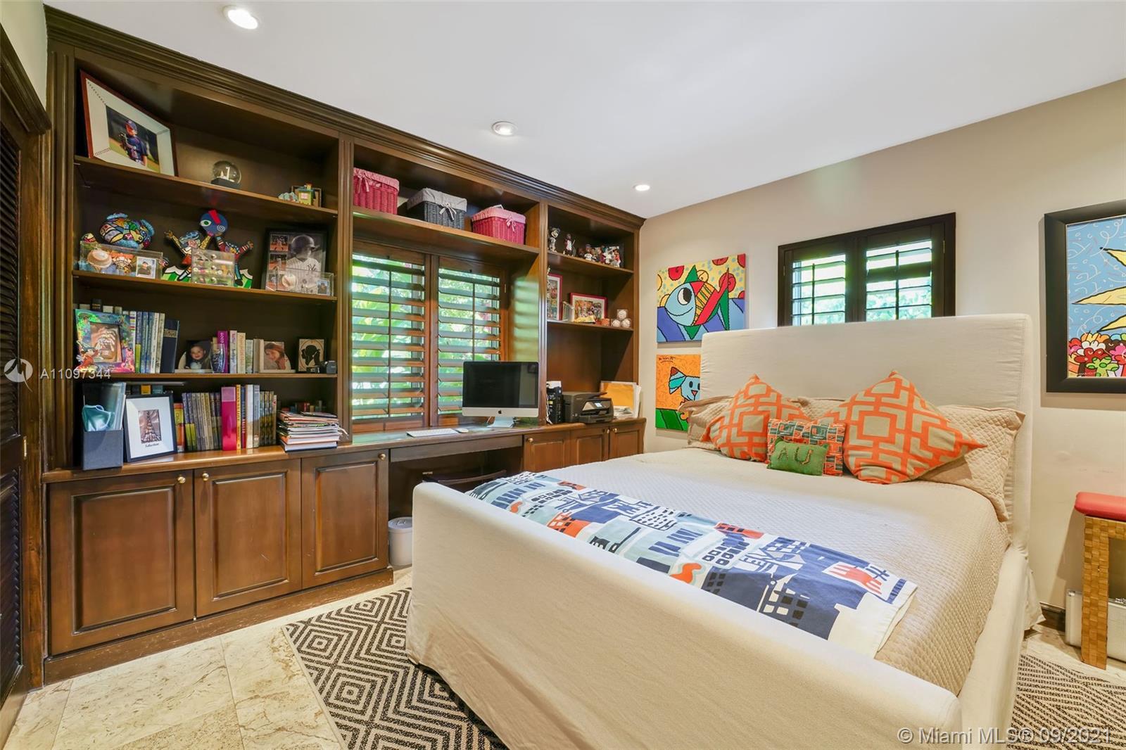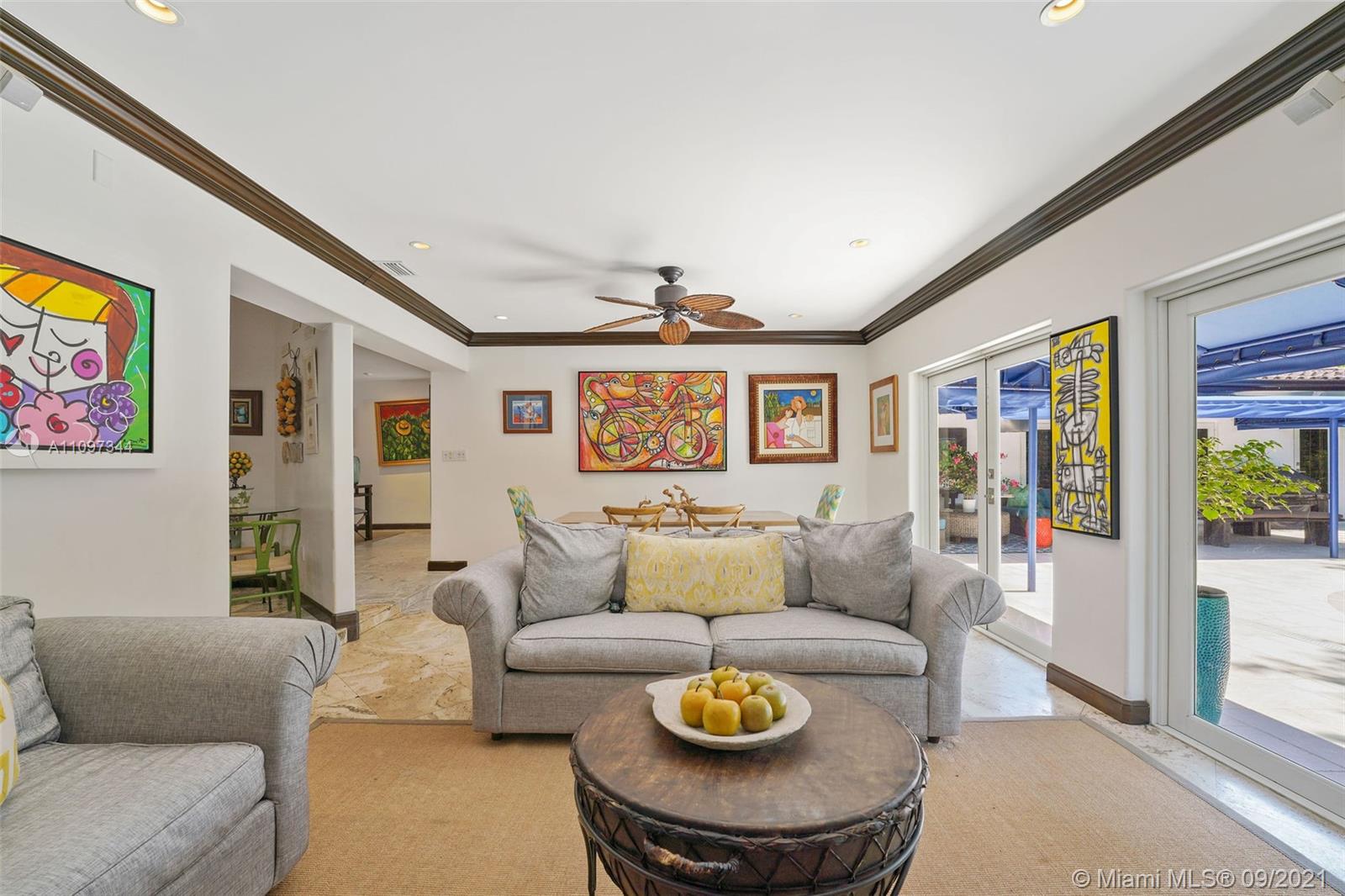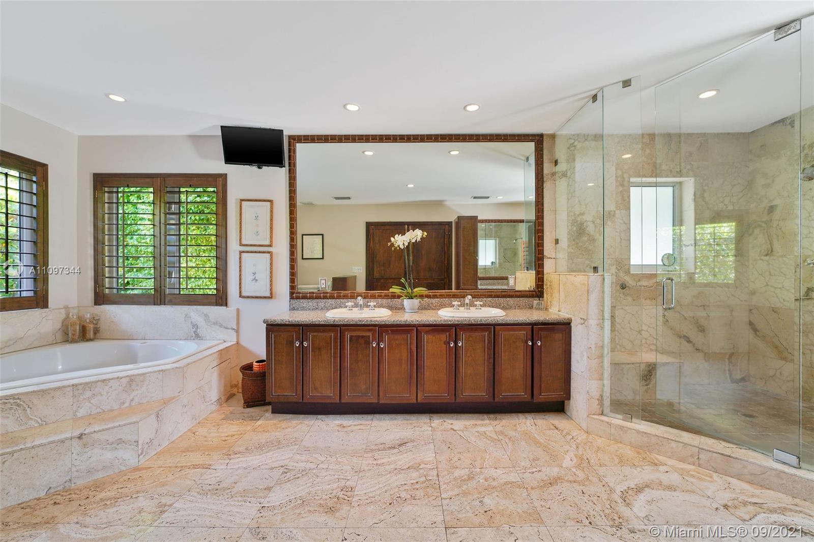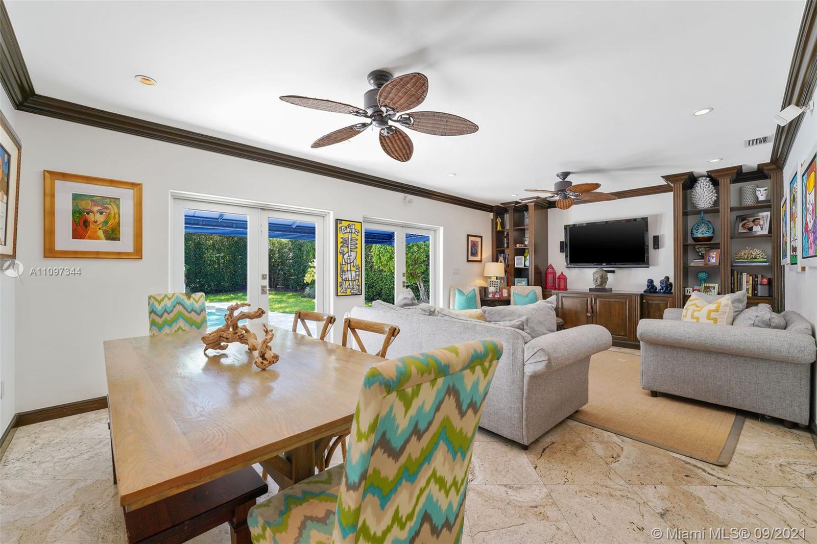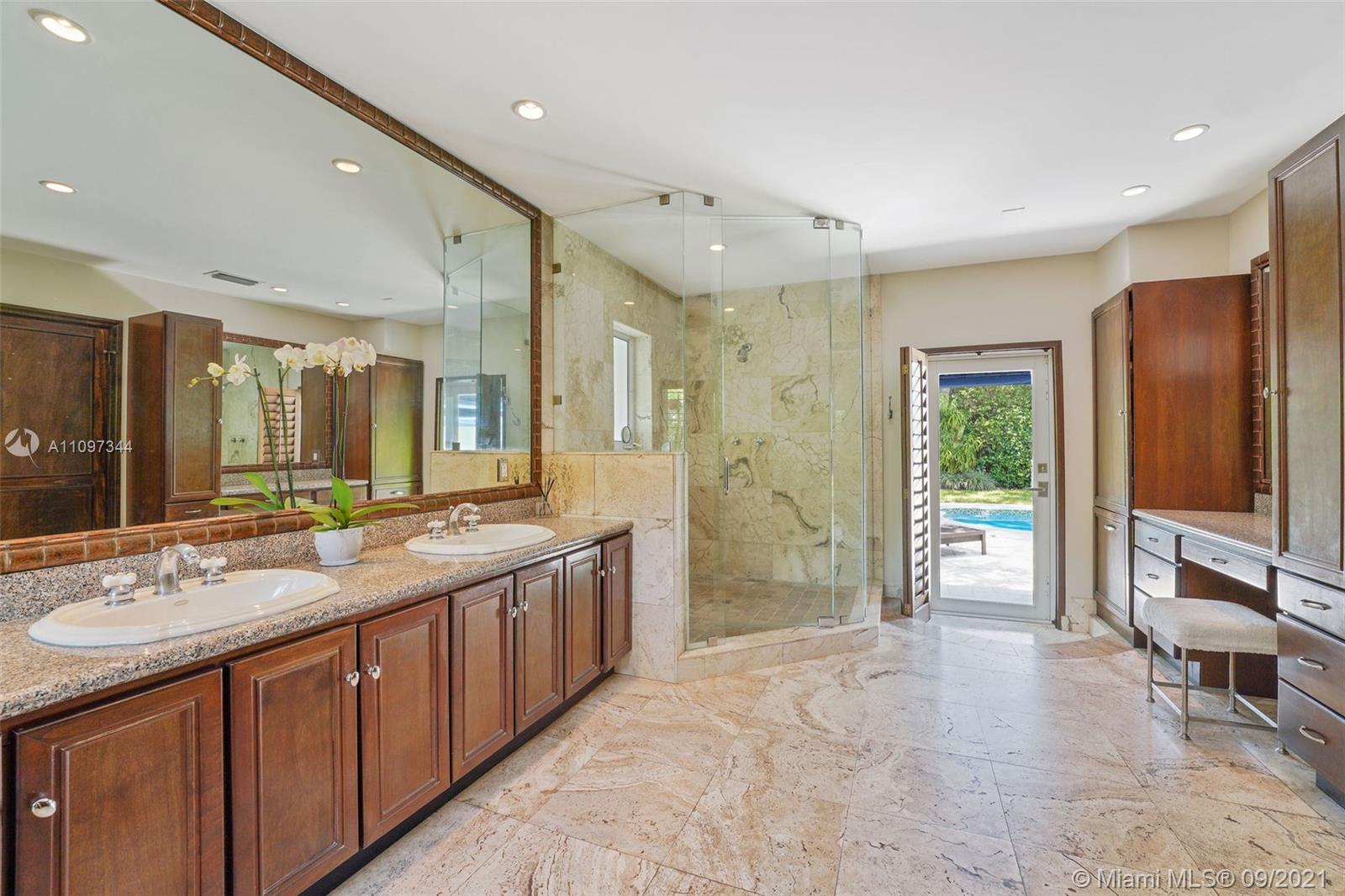 INVITING EXTERIOR WELCOMES YOU TO THIS IMPECCABLE SOUTH GABLES POOL HOME LOCATED ON QUIET STREET. CHARMING LIVING ROOM W/FIREPLACE, PLANTATION SHUTTERS & MARBLE FLOORS OPENS TO FORMAL DINING ROOM W/SOARING CEILING. WELL-EQUIPPED KITCHEN W/BISTRO DINETTE AREA, GENEROUS STORAGE & INTERIOR LAUNDRY NEARBY. LG FAMILY ROOM W/ACCESS TO FREE-FORM POOL & AWNING-PROTECTED PATIO OFFERING YEAR-AROUND GRACIOUS OUTDOOR ENTERTAINING. SPACIOUS & PRIVATE MASTER BEDROOM W/WOOD BEAM CATHEDRAL CEILING, GENEROUS CLOSETS INCLUDING LARGE WALK-IN, DIRECT ACCESS TO POOL/PATIO. LG MASTER BATH W/DUAL SINK VANITY, SEPARATE SPA TUB & SHOWER, ADD'L VANITY W/AMPLE STORAGE. EXTRA BONUS ROOM W/CLOSET OFFERING AREA FOR MEDIA, OFFICE, PLAYROOM, MAID'S QTRS, ETC. IMPACT GLASS, EXTERIOR LIGHTING & LUSH LANDSCAPING!
