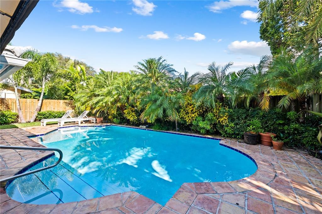 RARE chance to own a beautifully maintained Florida tropical-oasis styled home boasting 3 beds, 2 baths, with a separate guest/in-law/renter's suite. Tucked away perfectly into the heart of Coral Ridge with newly inserted hurricane impact graded windows and doors. 2014/2015 barrel-tile roof, new landscaping, generously-sized pool, covered patio/exterior dining, and Tiki Hut will fulfill any entertainers dream two fold. Oversized 2 car garage with AMPLE storage space and built-ins. Separate guest/renter's suite includes 1 bed, 1 full bathroom, closet space and an option to insert a kitchenette. The Florida tile in the home is in PRIME condition. Priced to sell. Re-done homes in area going for 1.3-1.4. A-rated Bayview School District, Country Club, Yacht Club, walk to beach, mall, A+ dining.