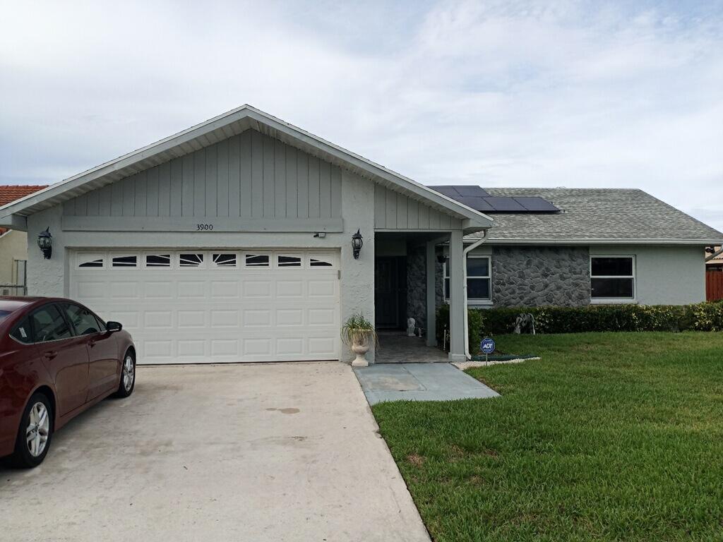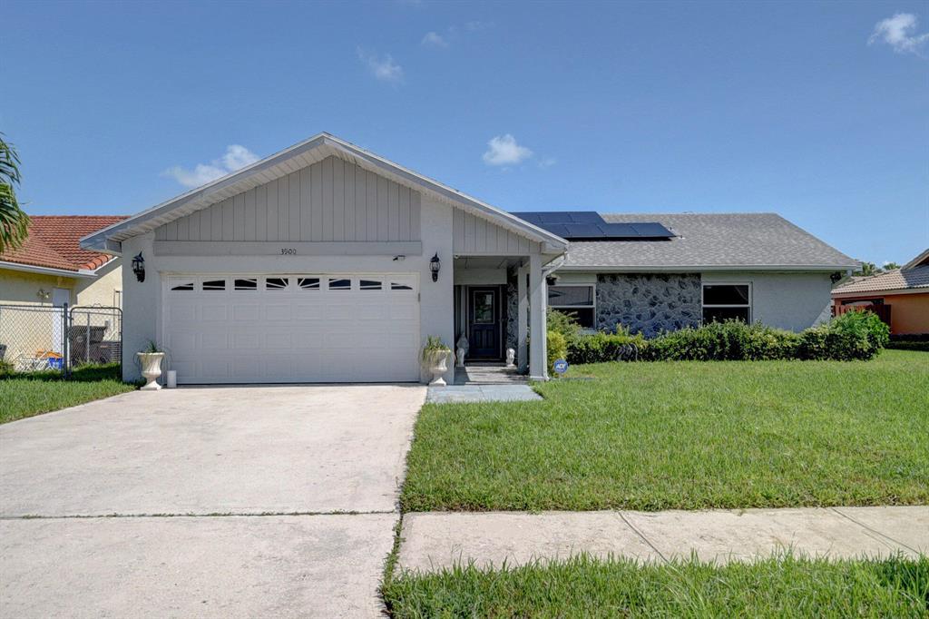 Come and view this lovely 3 bedrooms, 2 bathrooms, 2 garage home in the quiet and serene development of Spencer Lakes in the heart of West Palm Beach. Home features upgraded kitchen and bathrooms with granite counter tops, stainless steel appliances, accordion hurricane shutters, and water purifying system. Solar Panels for entire house and generator. Walking distances to good schools and shopping areas and minutes away from Downtown West Palm Beach and the Beaches. This house is waiting for you to make it your own.