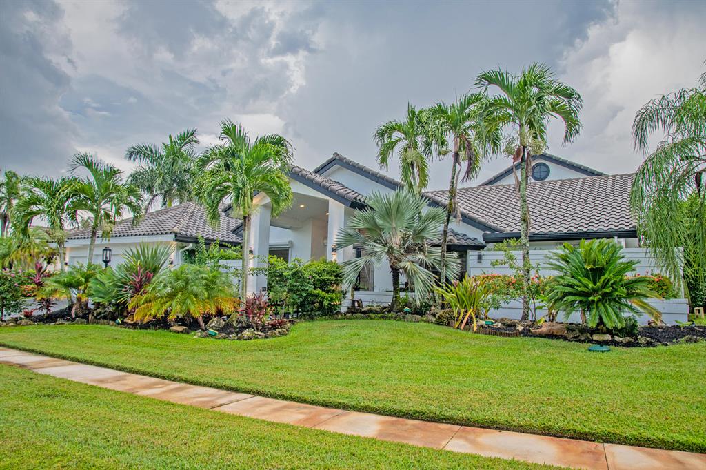 Look no further as this is the house you have been waiting for...Enjoy the beautiful landscape as you enter the front door and fall in love with your own waterfall, 1 of 3! The double entry doors leave you no choice than to view the incredible outdoor living area with a magnificent pool and lake front that invites you to prepare a glass of wine ready to glance at sunset. The minute you step inside, you will notice the beautifully selected modern ceramic floor throughout entire home. Formal living room with built in wet bar area and floor to ceiling sliders to bring the outdoors in throughout living area, master bedroom, and kitchen areas. A formal dining room with a front view of the waterfall sets this home apart from the ordinary making it extraordinary.