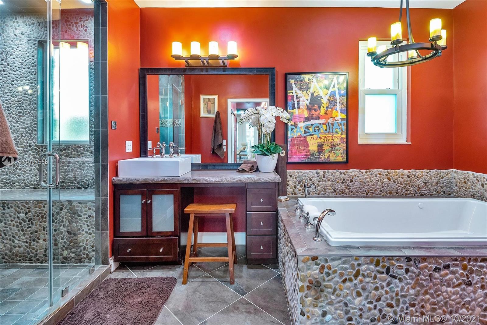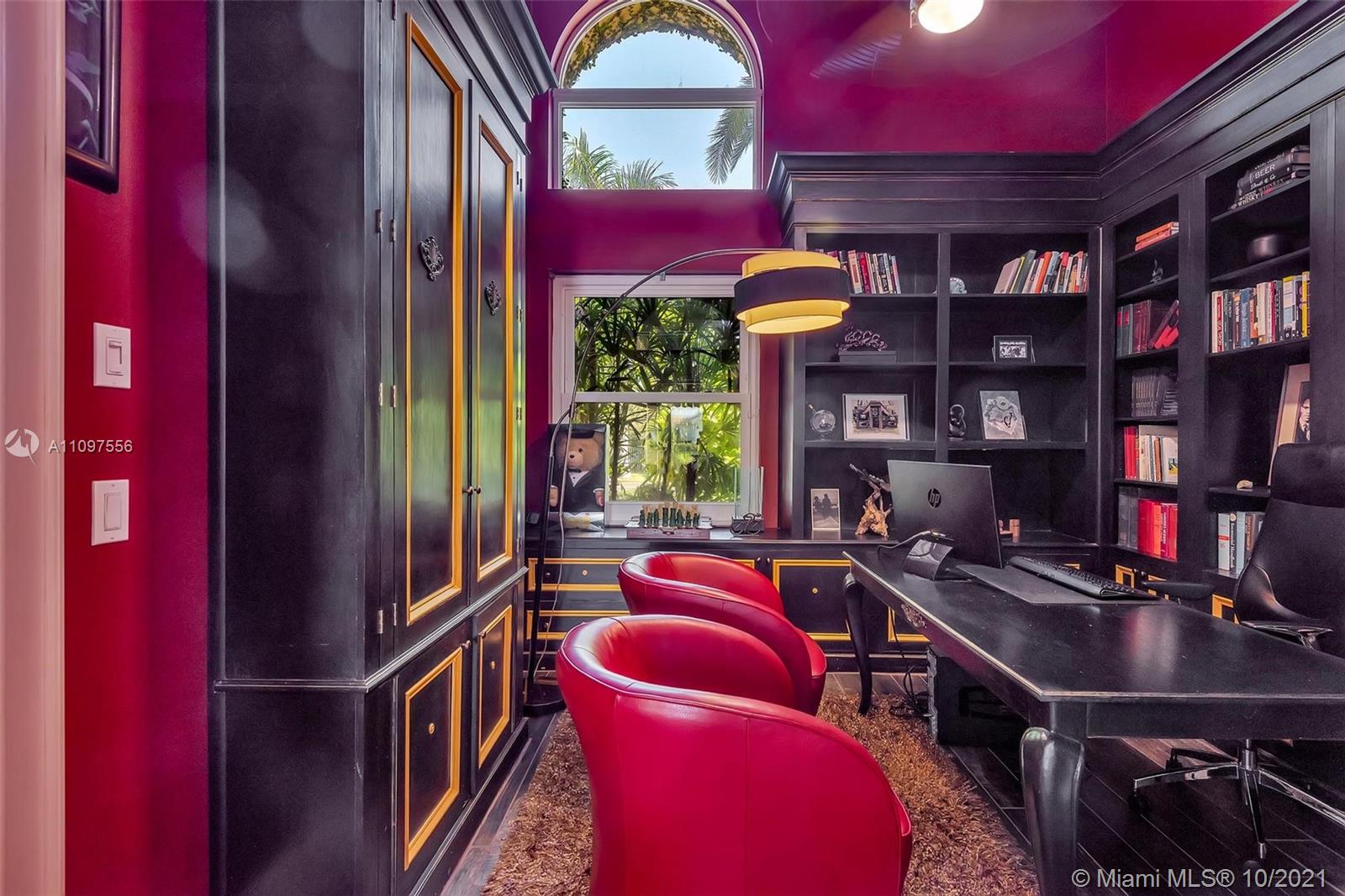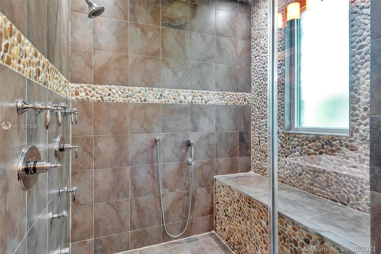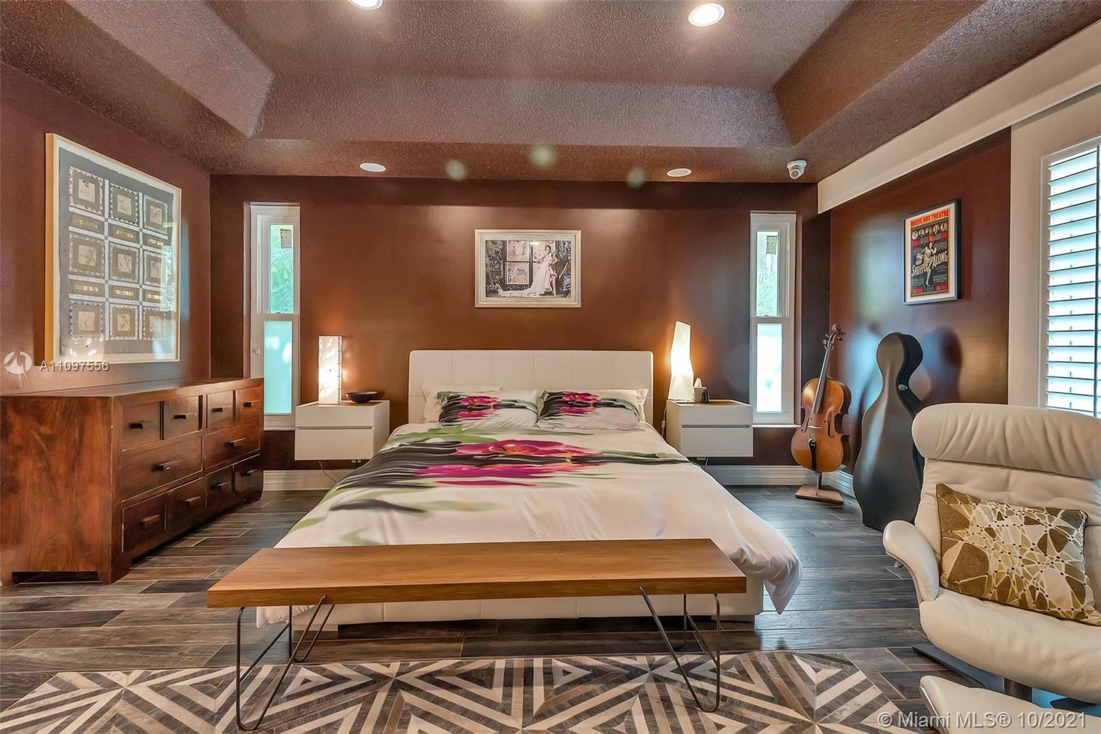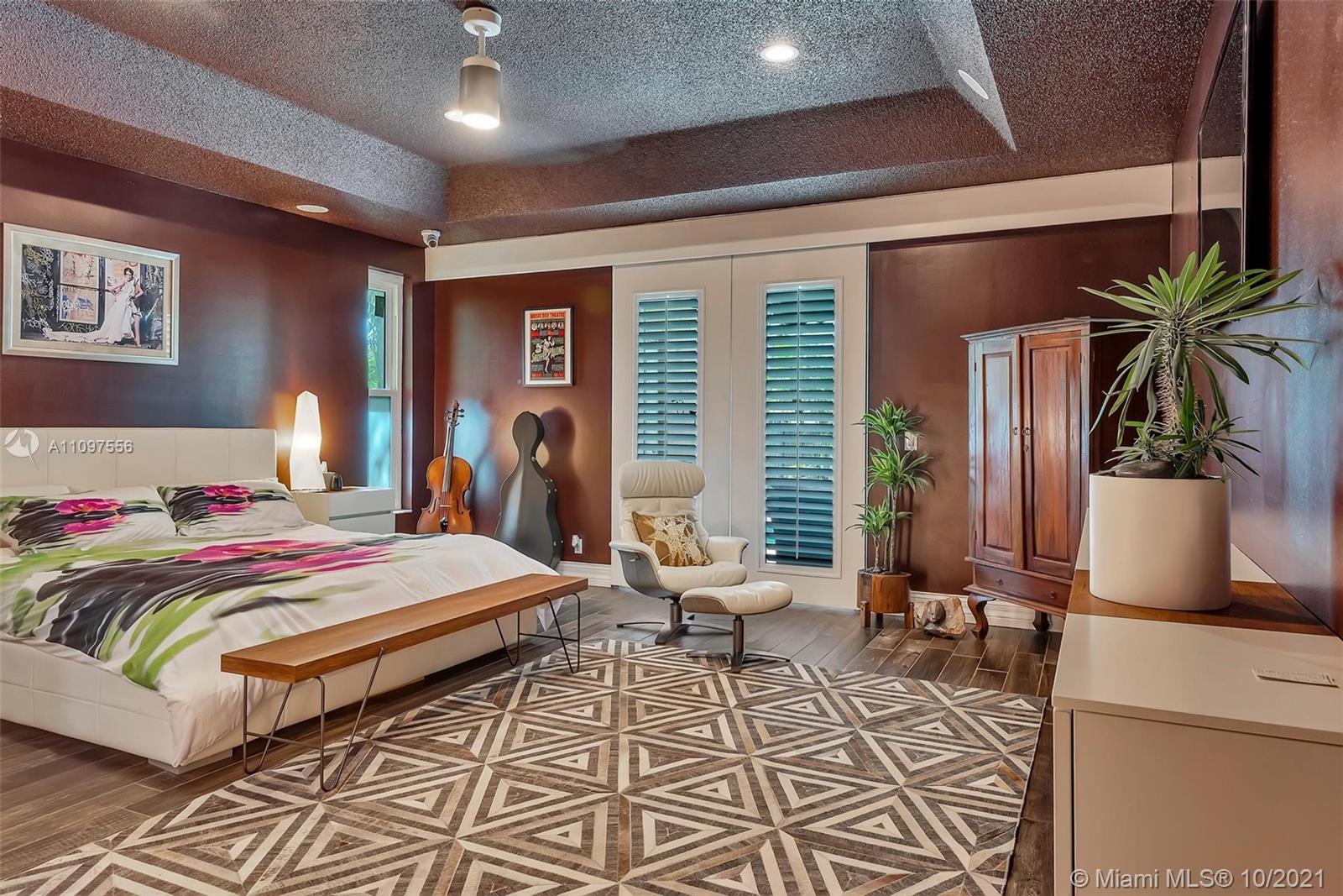 Spectacular lakefront estate in prestigious boutique Palm Island! This luxury home is a single-story it has a heated pool, fully fenced back yard, steam shower in primary bath, cabana half bath, outdoor shower, and a totally private picturesque view! The property had a huge living area, a separate dining area, a bonus Florida room. Spacious 3-split floor plan w/high ceilings, crown molding, electric water heater, plantation shutters, indestructible wood look floors, custom closets, wet laundry room, Thermador appliances, gas stove, Miele Coffee maker in the gourmet kitchen with L shape Island, wet bar w/kegerator, LED lighting, newer roof, newer ACs, garage with wall ac unit, hurricane impact windows and doors, manicured landscape, huge driveway with 2 car garage & much more! A+ schools!