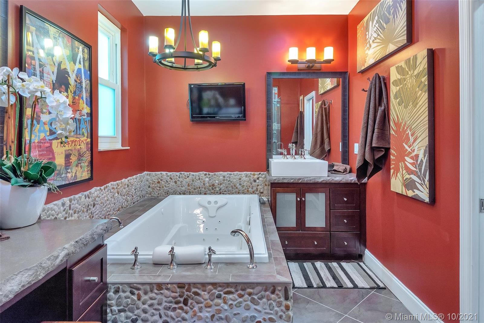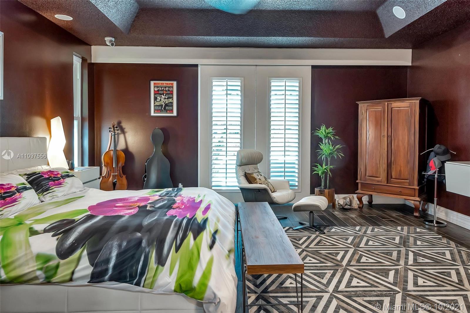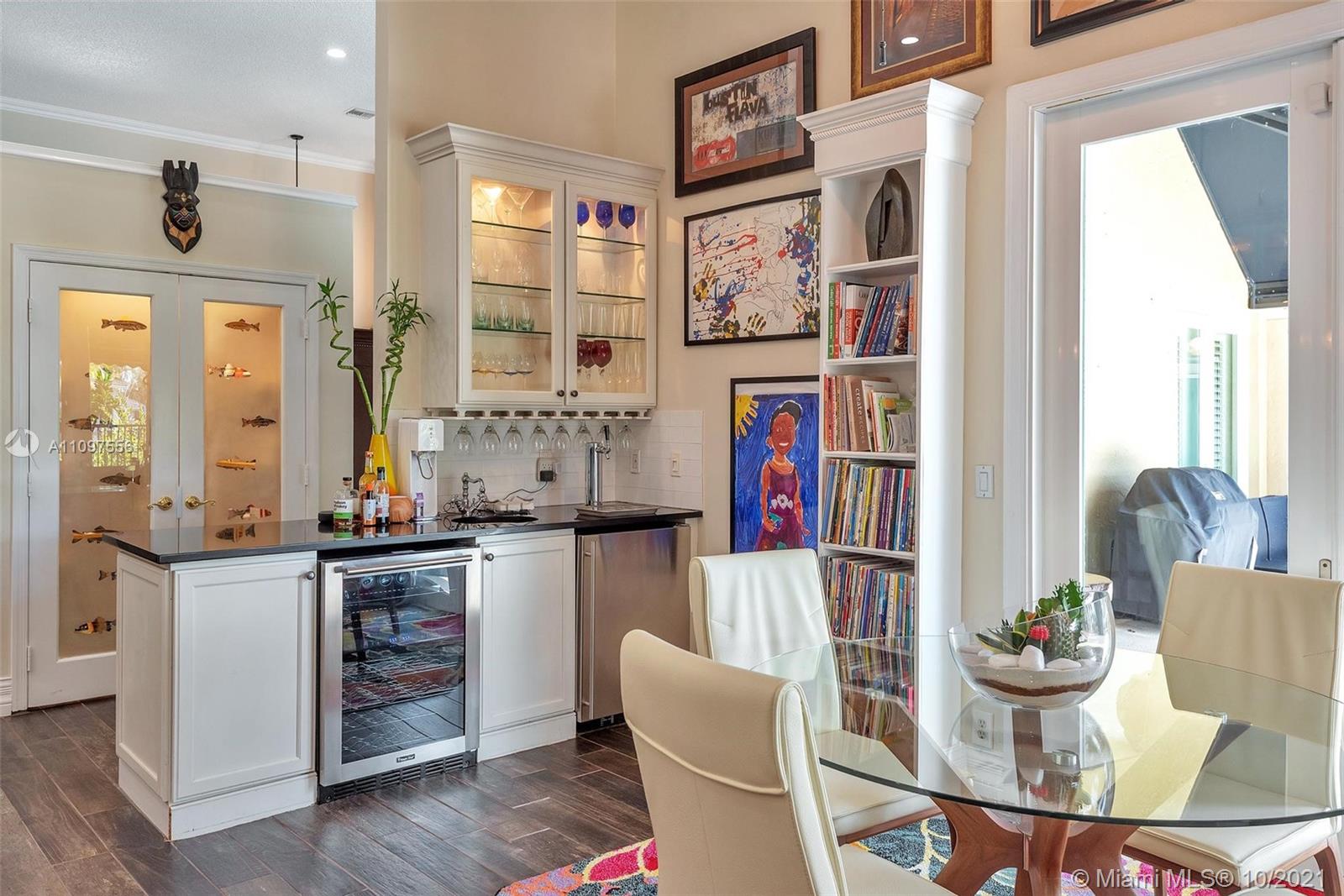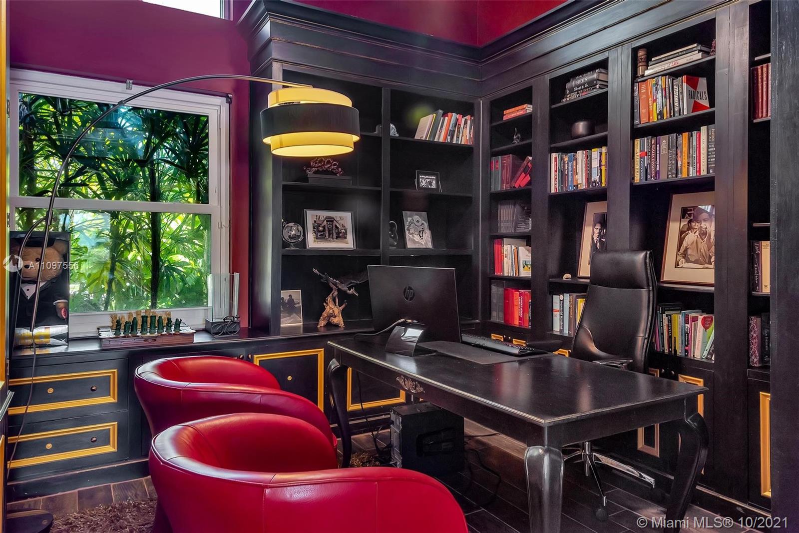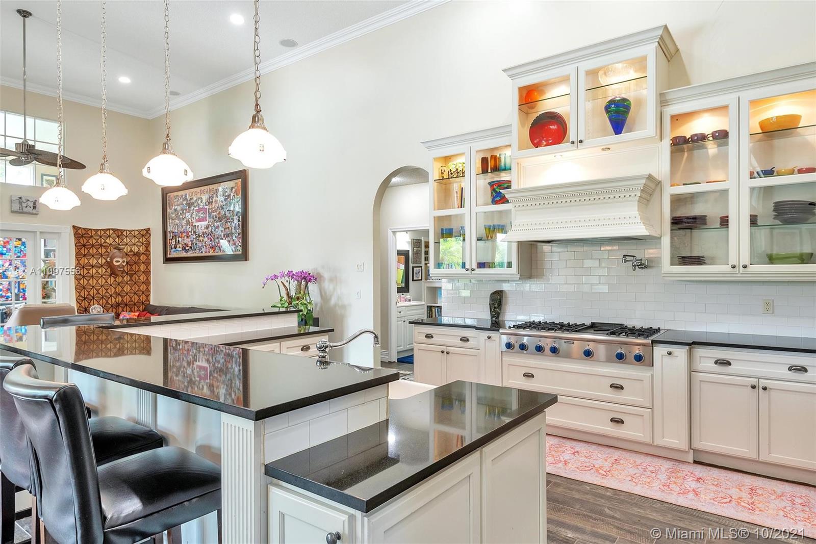 Spectacular lakefront estate in prestigious boutique Palm Island! This luxury home is a single-story it has a heated pool, fully fenced back yard, steam shower in primary bath, cabana half bath, outdoor shower, and a totally private picturesque view! The property had a huge living area, a separate dining area, a bonus Florida room. Spacious 3-split floor plan w/high ceilings, crown molding, electric water heater, plantation shutters, indestructible wood look floors, custom closets, wet laundry room, Thermador appliances, gas stove, Miele Coffee maker in the gourmet kitchen with L shape Island, wet bar w/kegerator, LED lighting, newer roof, newer ACs, garage with wall ac unit, hurricane impact windows and doors, manicured landscape, huge driveway with 2 car garage & much more! A+ schools!