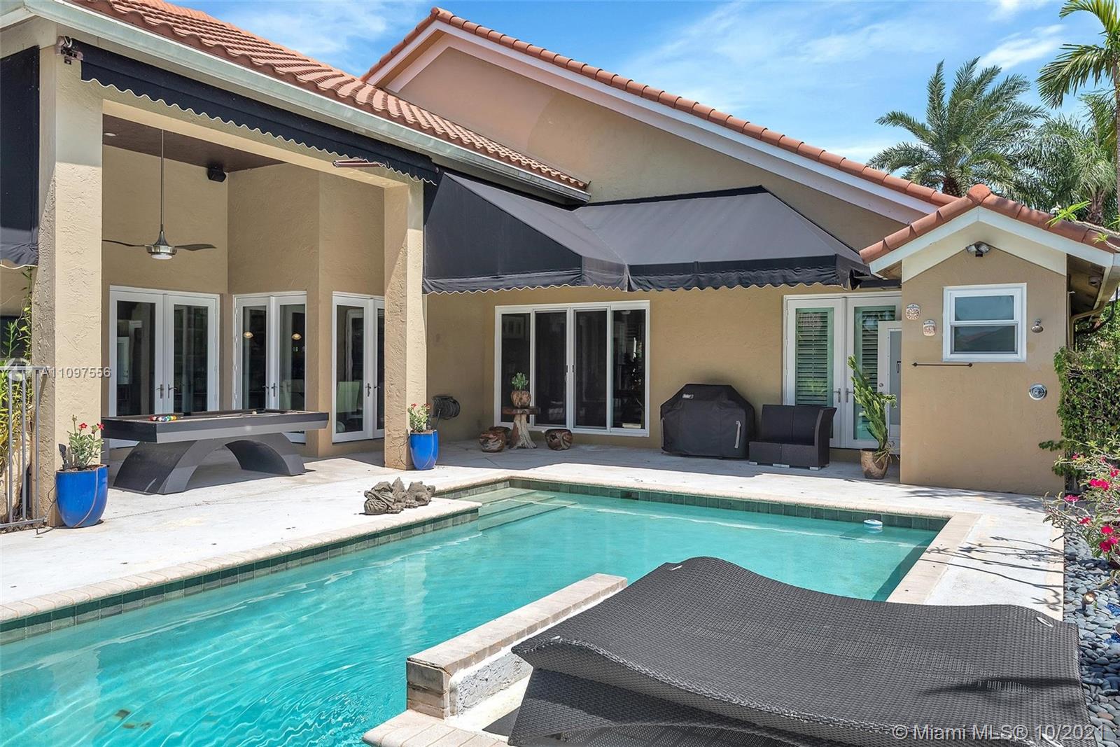 • Exterior Feature:Awnings, Deck, Fence, SecurityHighImpactDoors, Lighting, OutdoorShower, Porch