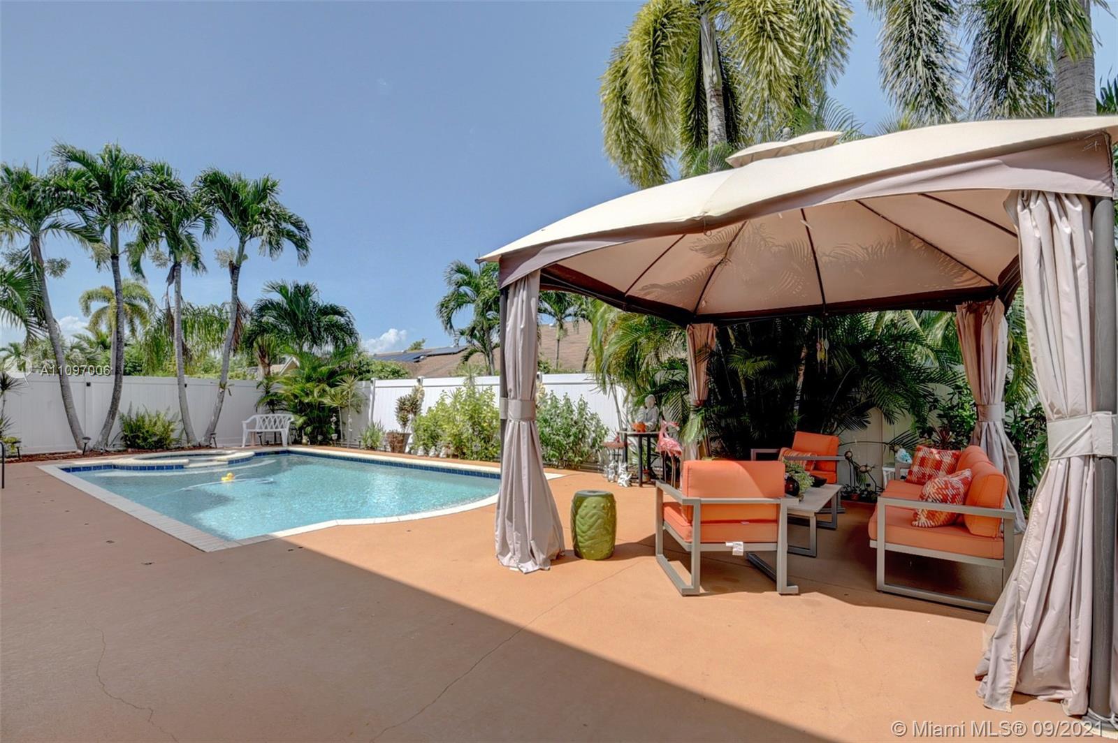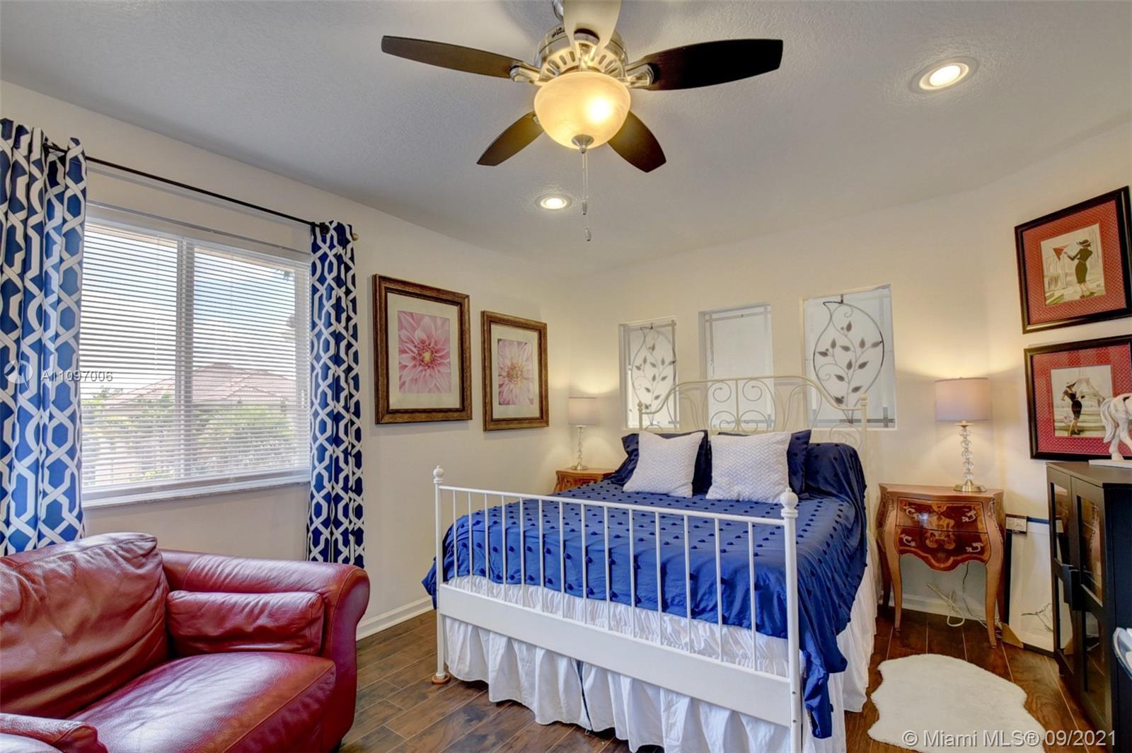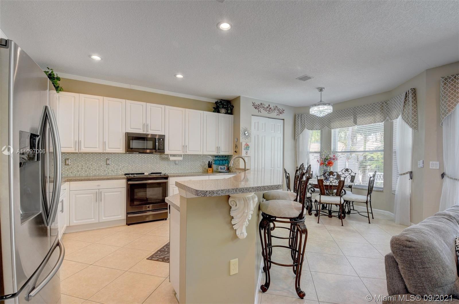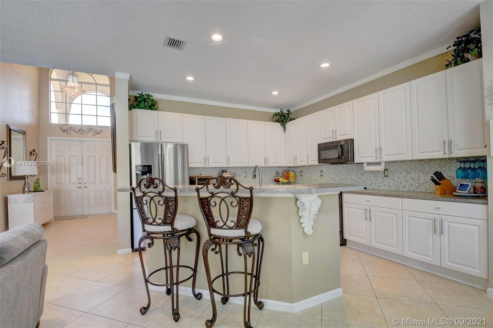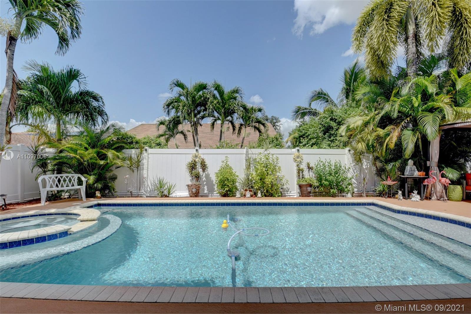 Eagle Lakes in Coral Springs. This gorgeous, spacious 5 bedroom/ 3 bathroom, 3 car garage with one car converted for storage but easily converted back, 20' volume ceilings, single family pool home. Community is gated for security, low HOA. Master bedroom is upstairs and boasts separate tub and shower, dual sinks and ample walk in closet. One bedroom and full bath on main level. Kitchen has upgraded white cabinetry, stainless appliances and looks out to the spacious and private backyard with fully fenced yard. Neutral tile downstairs, upgraded laminate throughout 2nd floor. All bathrooms updated, Accordion shutters, roof 2003, A/C outside 2019, inside upstairs 2018 and inside downstairs 2012, water heater 2019.