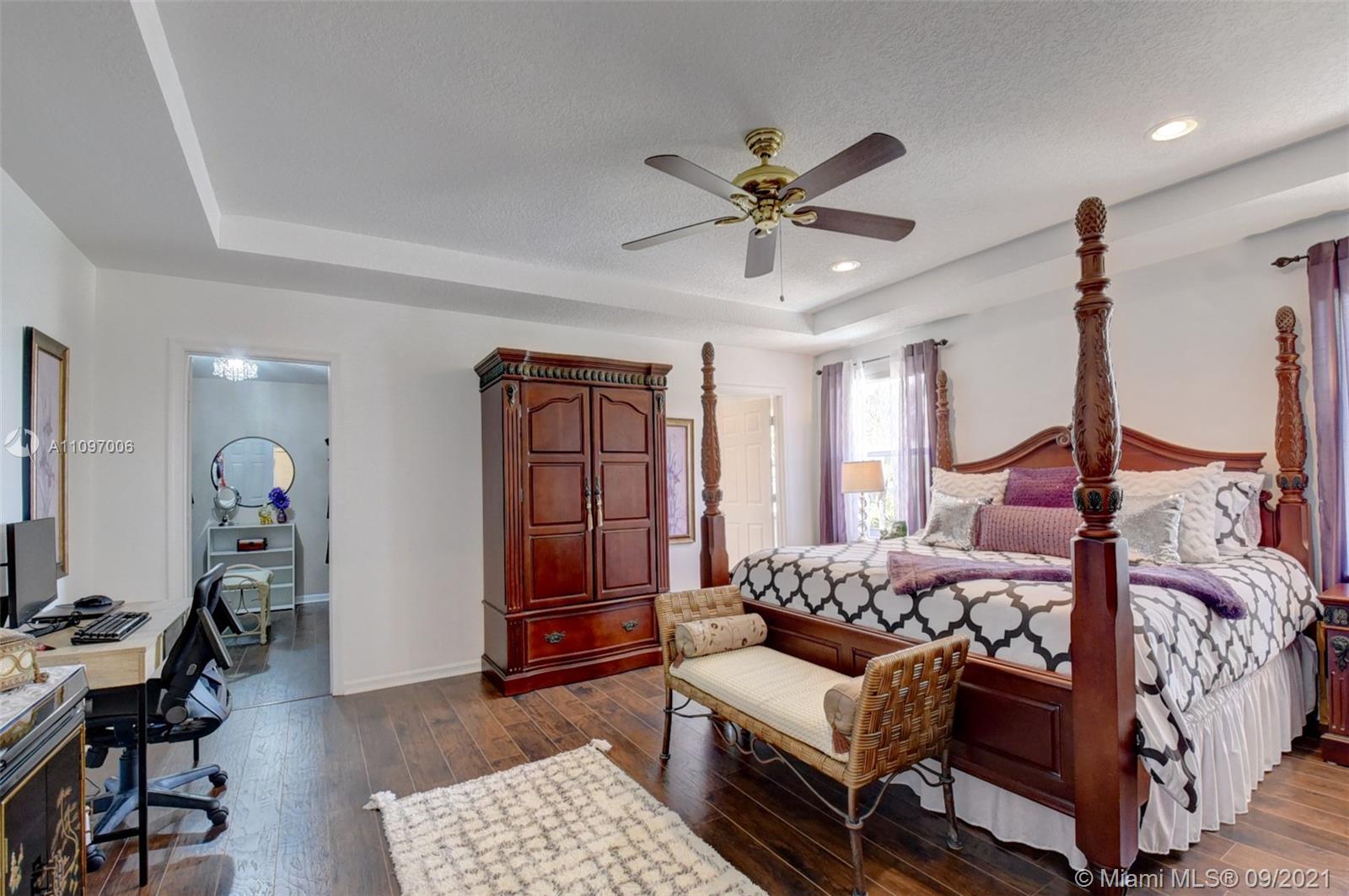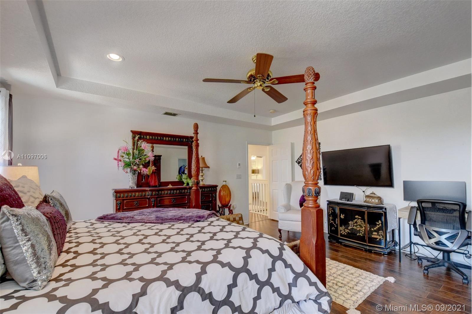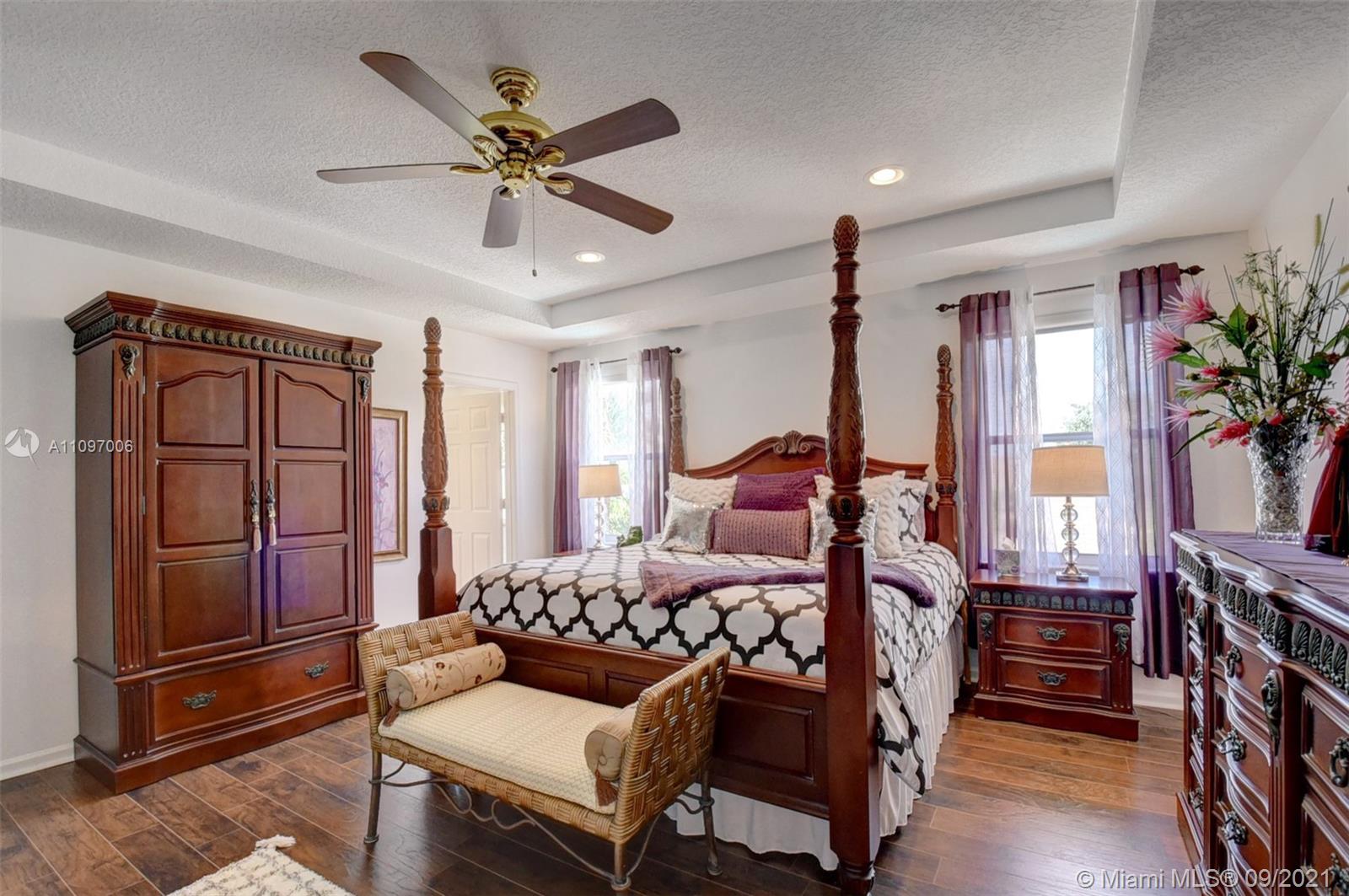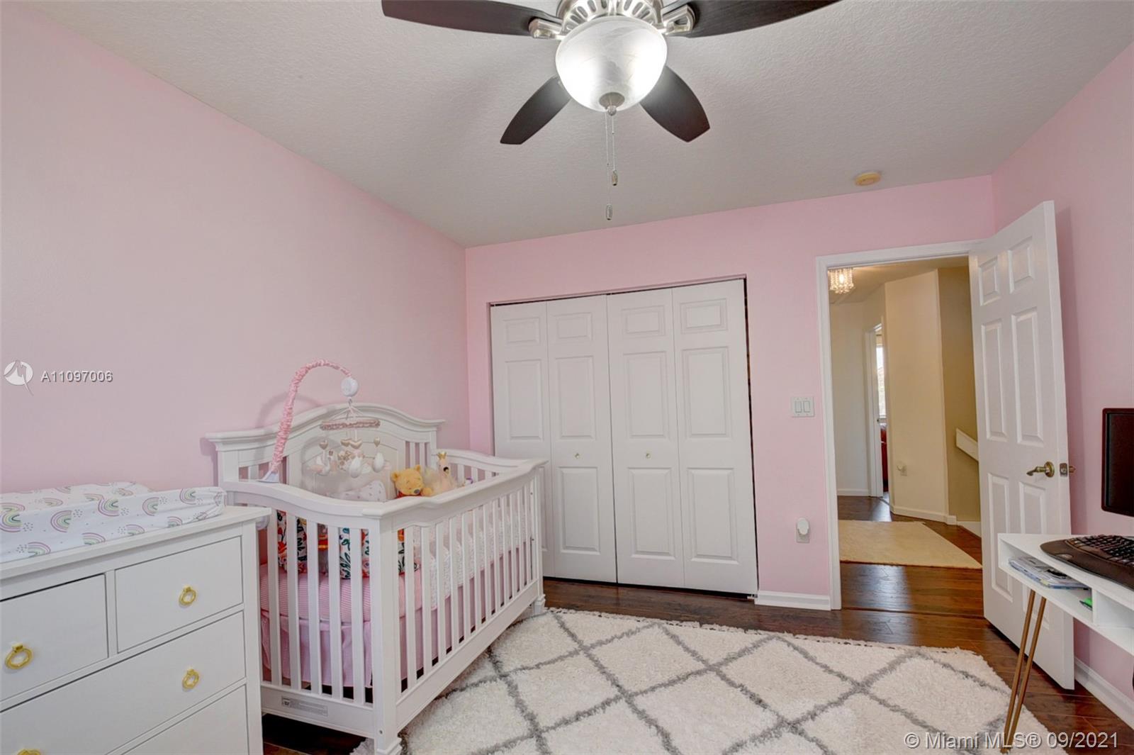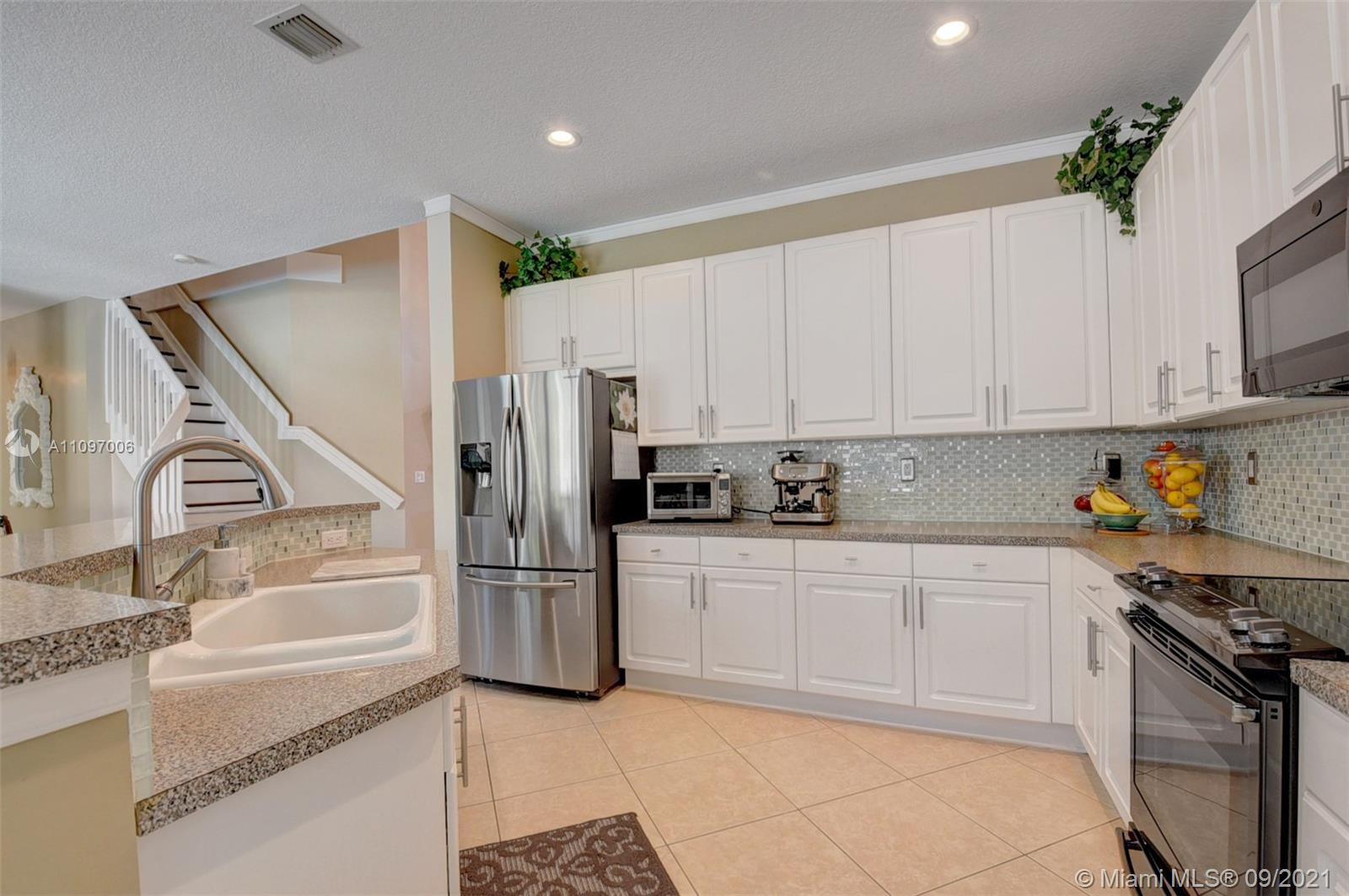 Eagle Lakes in Coral Springs. This gorgeous, spacious 5 bedroom/ 3 bathroom, 3 car garage with one car converted for storage but easily converted back, 20' volume ceilings, single family pool home. Community is gated for security, low HOA. Master bedroom is upstairs and boasts separate tub and shower, dual sinks and ample walk in closet. One bedroom and full bath on main level. Kitchen has upgraded white cabinetry, stainless appliances and looks out to the spacious and private backyard with fully fenced yard. Neutral tile downstairs, upgraded laminate throughout 2nd floor. All bathrooms updated, Accordion shutters, roof 2003, A/C outside 2019, inside upstairs 2018 and inside downstairs 2012, water heater 2019.