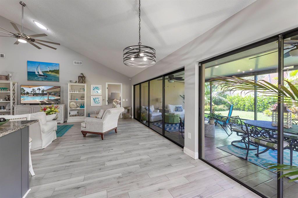 Endless upgrades inside and out! This beautifully renovated 3-bedroom 2-bath 2-car garage home has 1,945 SqFt of living space. Spacious master suite with newer wood floors, his & her closets, dual-vanities, large marble walk-in rain shower along with a large stand-alone modern soaking bathtub. Two spacious guest rooms with lots of natural light, brand-new laminate floors, newer vanity and a shower & tub combo. Kitchen has a large granite countertop island which is open to the living room which has high vaulted ceilings. White-shaker cabinets, plenty of storage space and newer stainless appliances. Outdoor end-to-end screened in patio for large gatherings. New landscaping, newer roof. ***New Custom Hurricane Accordion shutters have been ordered, paid for and are waiting to be installed.