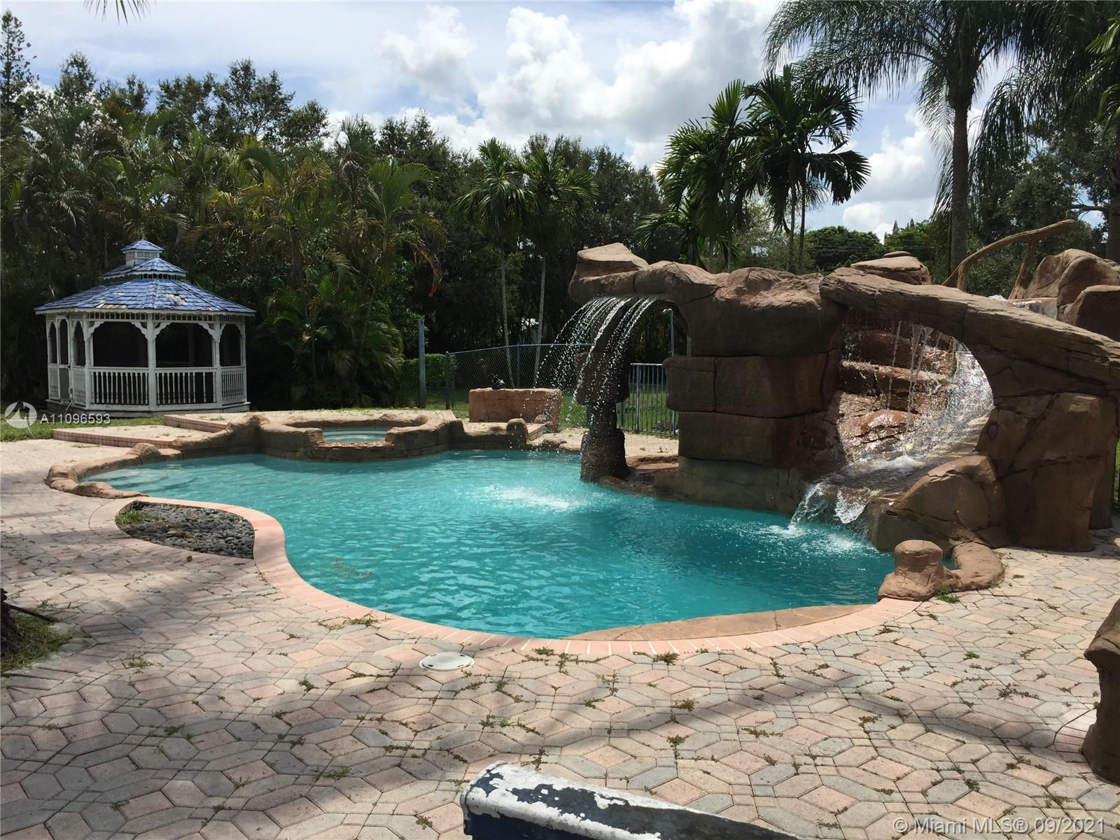 Excellent opportunity to own this unincorporated Davie Estate Home, one of the few available properties in Broward County situated on a sprawling 76,803-square-foot lot in an equestrian friendly community with plenty of room for stalls and arena. Expansive interior boasting soaring ceilings with massive master suite plus separate sitting room, enormous walk-in closet and large balcony overlooking resort like pool with slide, waterfall and spa. Pool area is custom built as well as the BBQ pit with seating and dog house. The home features 6/6 plus a 1/1 In-Law quarters with separate entrance, all AC units replaced in 2015, alarm and accordion shutters on windows and doors. This unique and quiet estate needs TLC but has endless possibilities. Bring your decorator and make it your own!