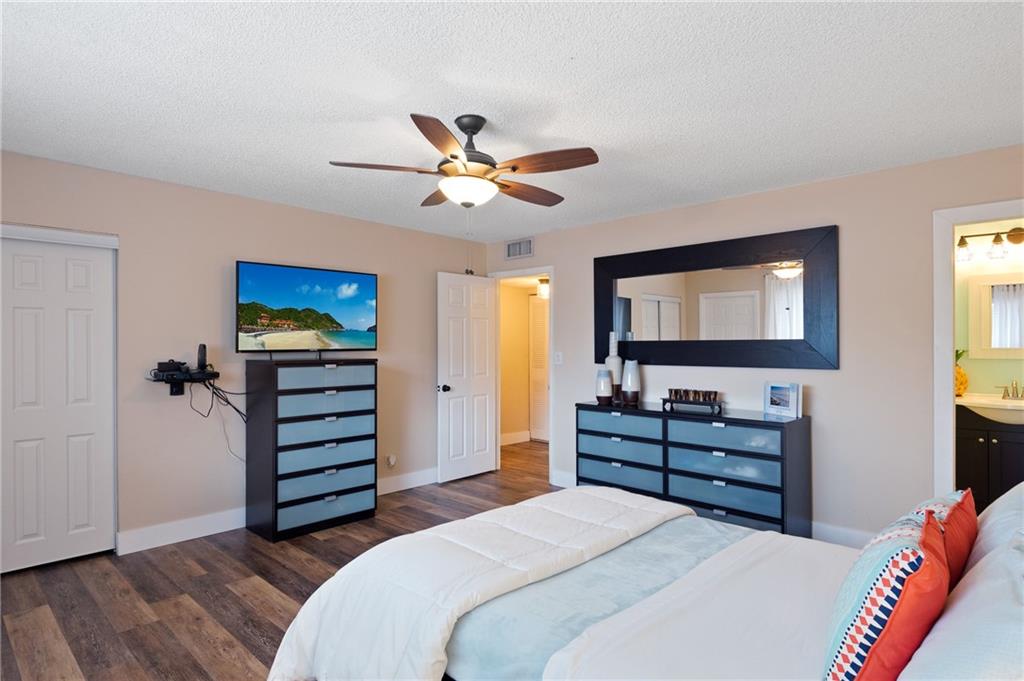 Must See Charming Waterfront Three Bedroom with Two and a Half Bathrooms in Desirable Las Haciendas Townhouse at Jacaranda! Mexican Tile and Wood Flooring Throughout. Open Floor Plan. New Screened Back Patio and Flooring with Strung Bistro Lights and Tranquil Views of the Lake- Just Steps Away! Kitchen Features Blue-Grey Wood Cabinets with White Farmhouse Sink, Tile Countertops and Bar / Snack Counter Top. Living Area Features TV Counsel that Conveys with Custom Built In Desk. New Wood Flooring on Staircase. Second Floor Features Two Master Bedroom Ensuites with New Wood Flooring. Two New Roofs Including a Rooftop Deck - Unlimited Options for Lounging / Bar / Entertaining! AC 2013. Water Heater 2020. New Lighting Fixtures. Fantastic Location Near Jacaranda Country Club, Shopping & Dining!
