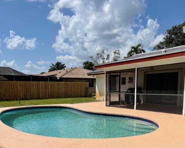 Beautiful 4 x 2 home in Coral Springs. New roof completed in 2018. Pool was recently resurfaced with Diamond Brite. A/C was replaced in 2017. House has a sprinkler system, new carpet in master bedroom, den, and one bedroom. New Washer and Dryer. 2 car garage. Ceiling fans in every room. Screened patio. Large circular driveway. Fenced in yard. Accordion hurricane shutters.