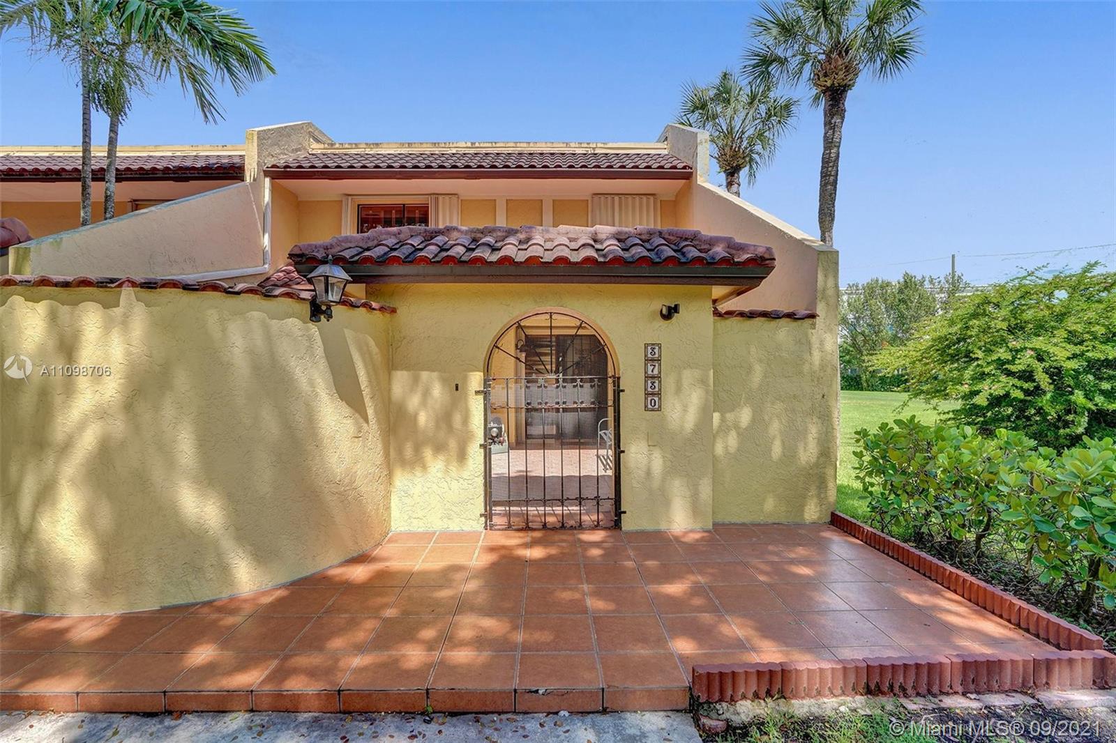 Gorgeous corner home in Doral in sought after Costa del Sol family community. Large floorplan with 2 bedroom, 3 baths, and Den. Some of the homes unique features are a beautiful entrance courtyard, big eat-in kitchen with stainless steel appliances, 2 master bedrooms, private rear patio, and 2 parking spaces with one guest space. Amenities Included: clubhouse, pool, playground for family entertainment, tennis/ basketball court, restaurant, and an 18 hole Golf course with discounted rates for owners. Maintenance Included: water, basic cable, 24-Hr gate access and security Patrol, Common areas, roof, Insurance, and more. Near A+ Schools, restaurants, shopping mall. SEE BROKER REMARKS