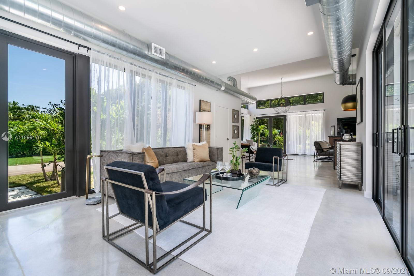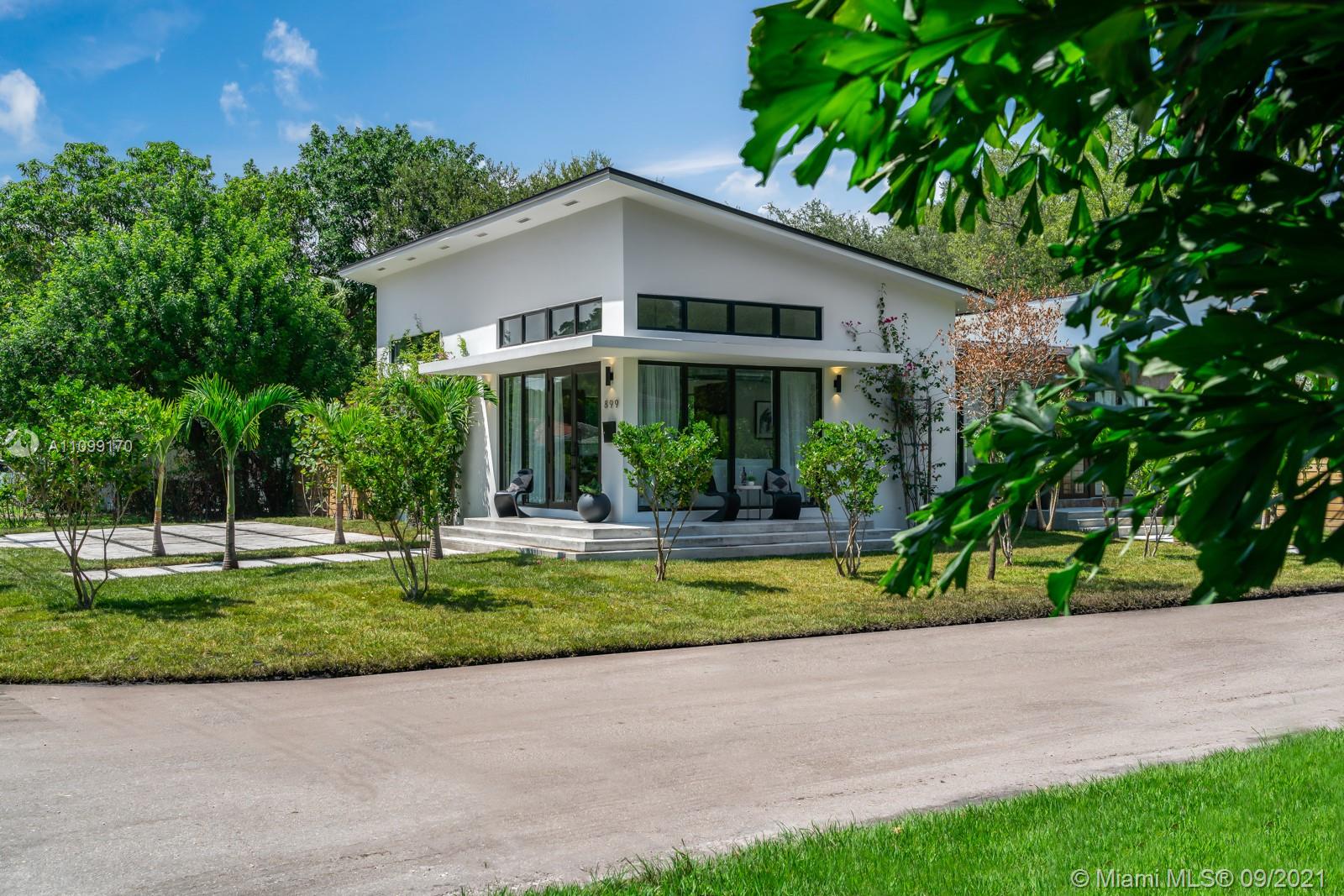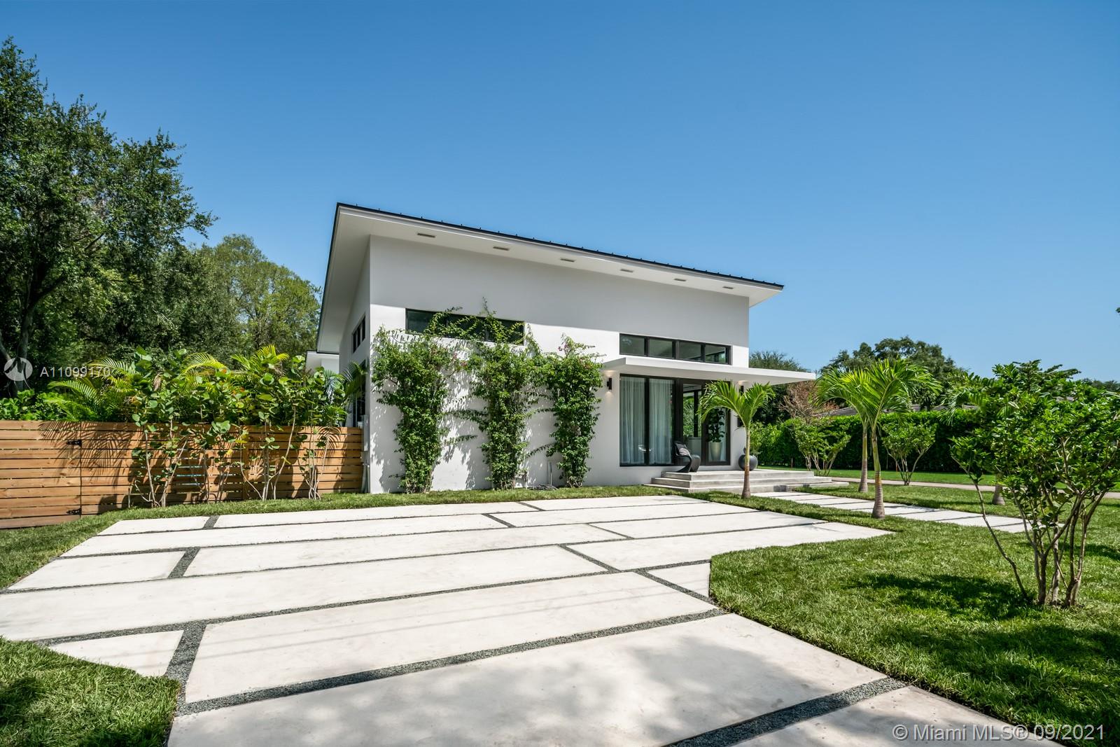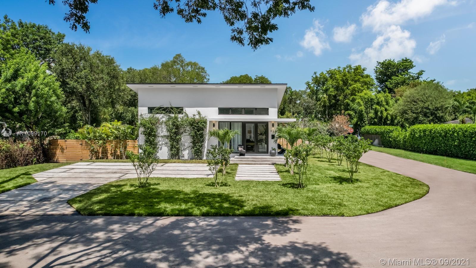 Introducing Dragonfly, the most iconoclastic new home built in Miami Shores. The Corbusier and Mies van der Rohe inspired pool home reveals “less is more” design- three planar forms, clean simple lines and honest use of materials, creating a rectilinear pedestal floating above the natural habitat. Unobstructed open free flow interiors wrapped in floor to ceiling impact glass walls and doors for abundant natural light. Triple single-pitched roofs create the iconic dragonfly form, with sloped soaring 16 ft ceilings and seamless indoor-outdoor living. Great features: luxe eat-in kitchen, artisan polished concrete floors, exposed industrial AC ducts, custom closet systems, designer baths and access to lush gardens from every room. For a truly unique non-traditional design, discover Dragonfly!