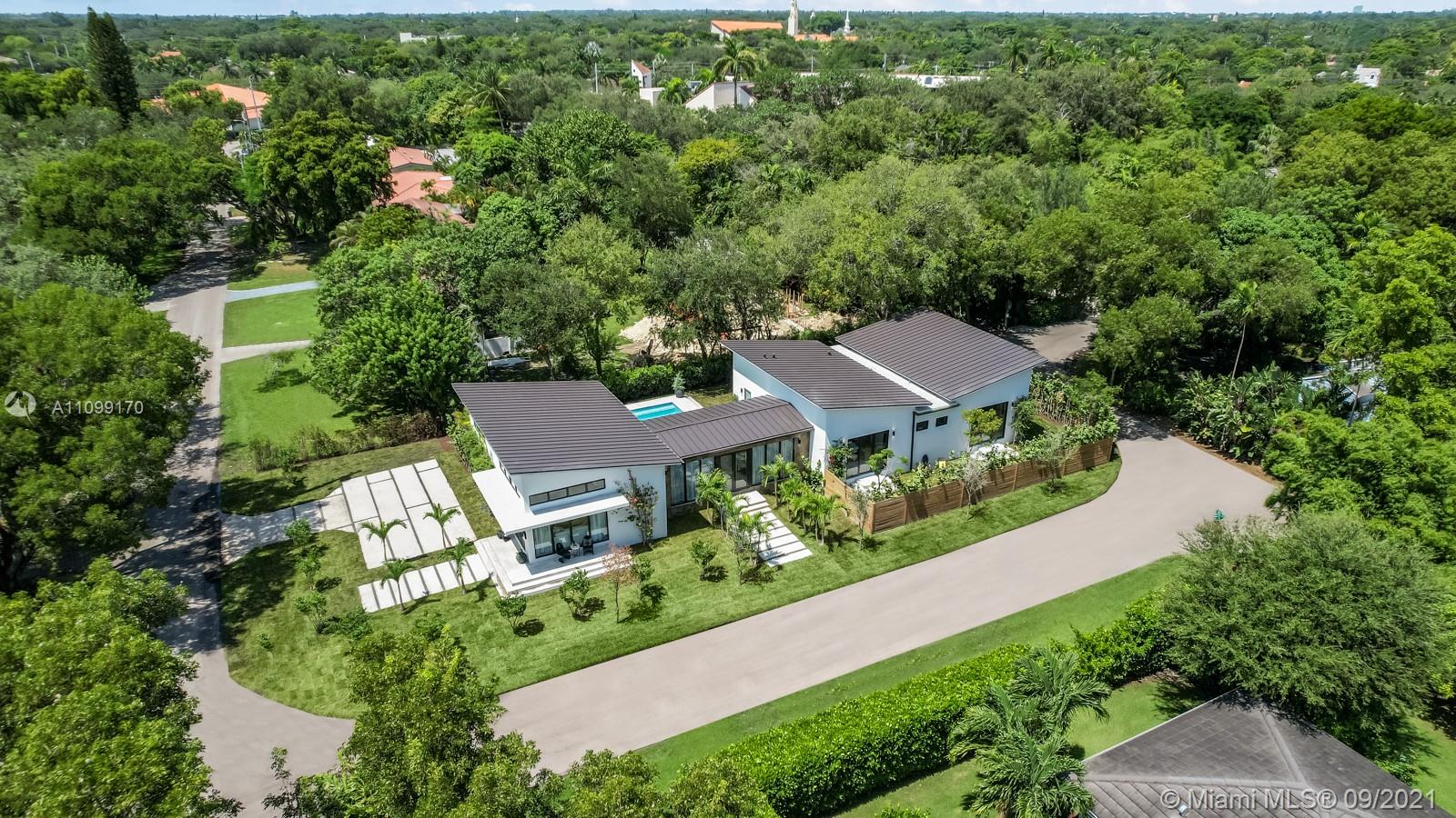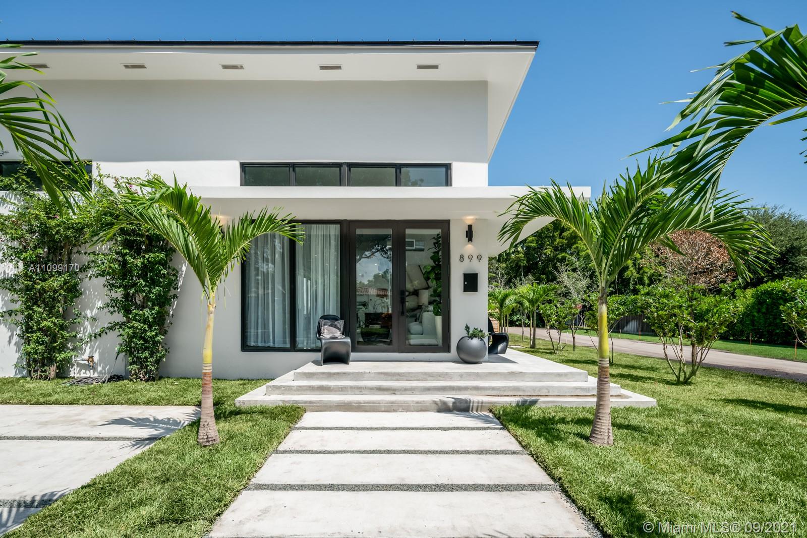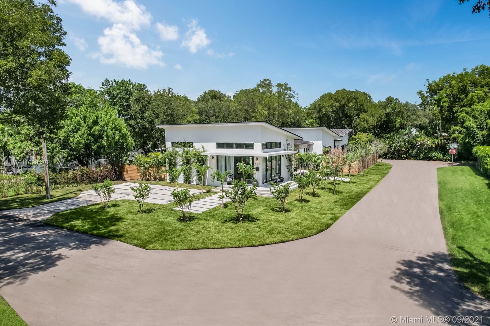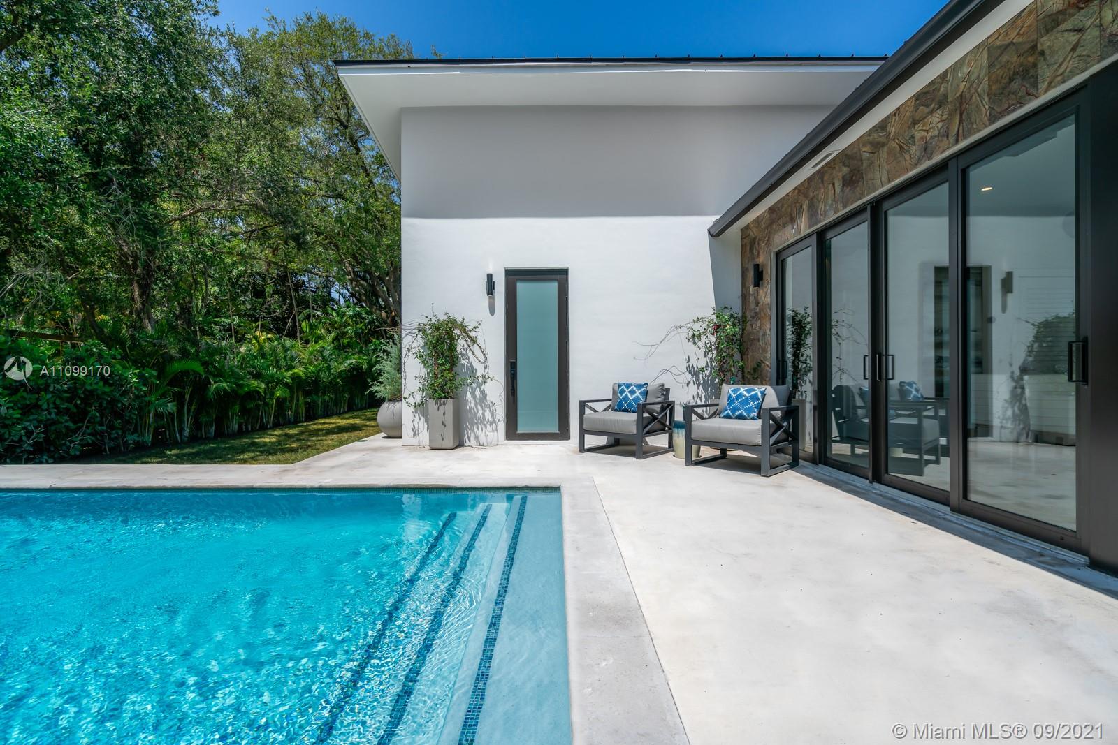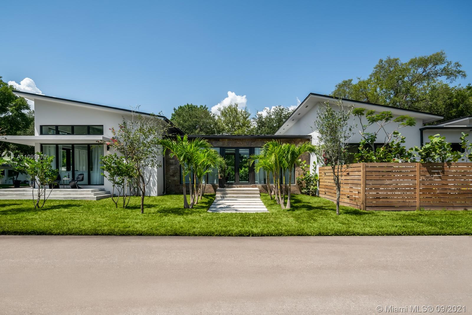 Introducing Dragonfly, the most iconoclastic new home built in Miami Shores. The Corbusier and Mies van der Rohe inspired pool home reveals “less is more” design- three planar forms, clean simple lines and honest use of materials, creating a rectilinear pedestal floating above the natural habitat. Unobstructed open free flow interiors wrapped in floor to ceiling impact glass walls and doors for abundant natural light. Triple single-pitched roofs create the iconic dragonfly form, with sloped soaring 16 ft ceilings and seamless indoor-outdoor living. Great features: luxe eat-in kitchen, artisan polished concrete floors, exposed industrial AC ducts, custom closet systems, designer baths and access to lush gardens from every room. For a truly unique non-traditional design, discover Dragonfly!